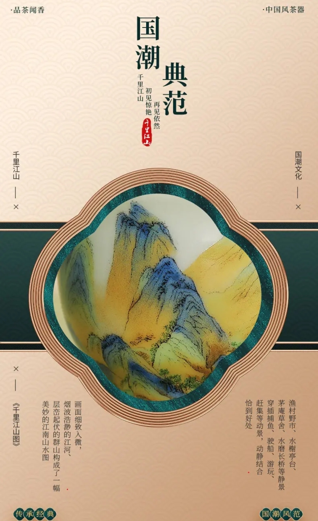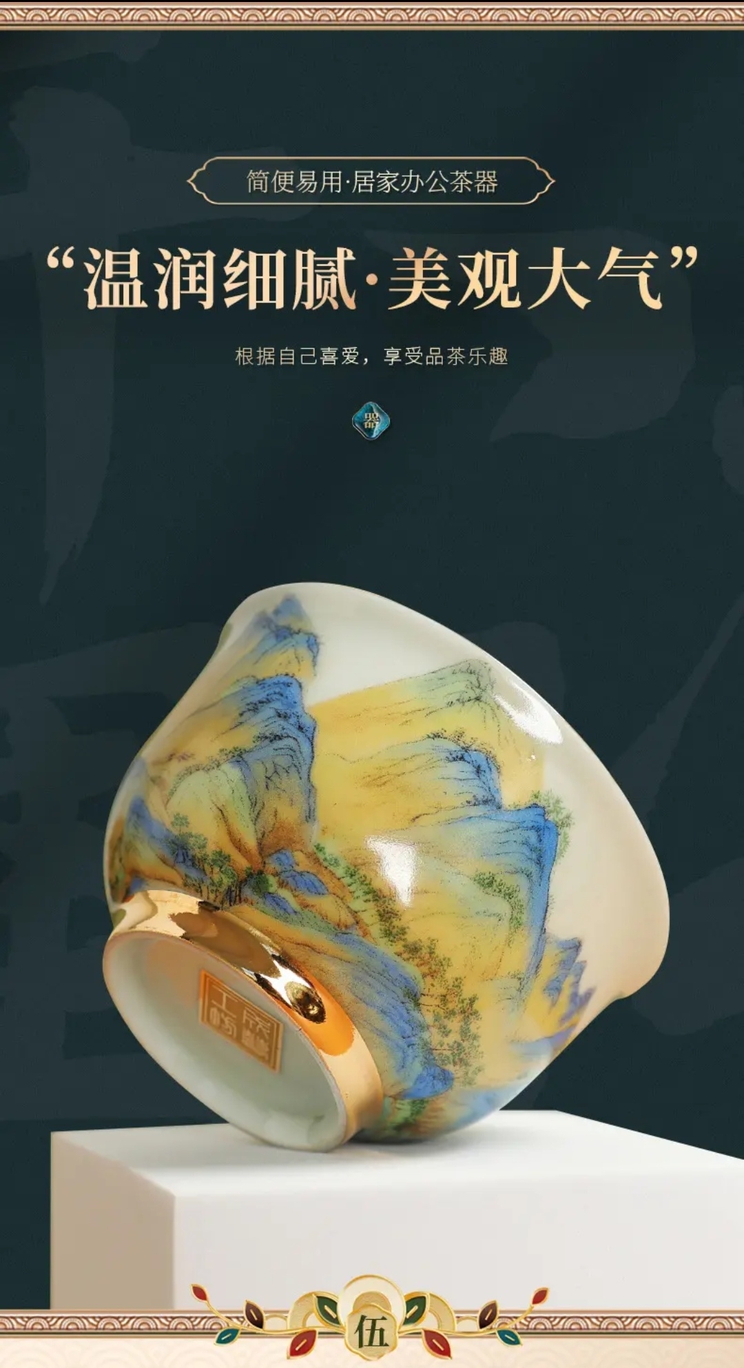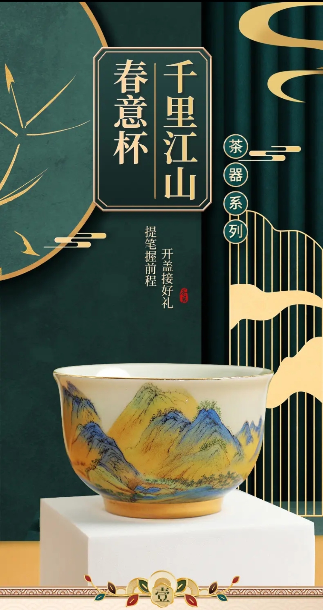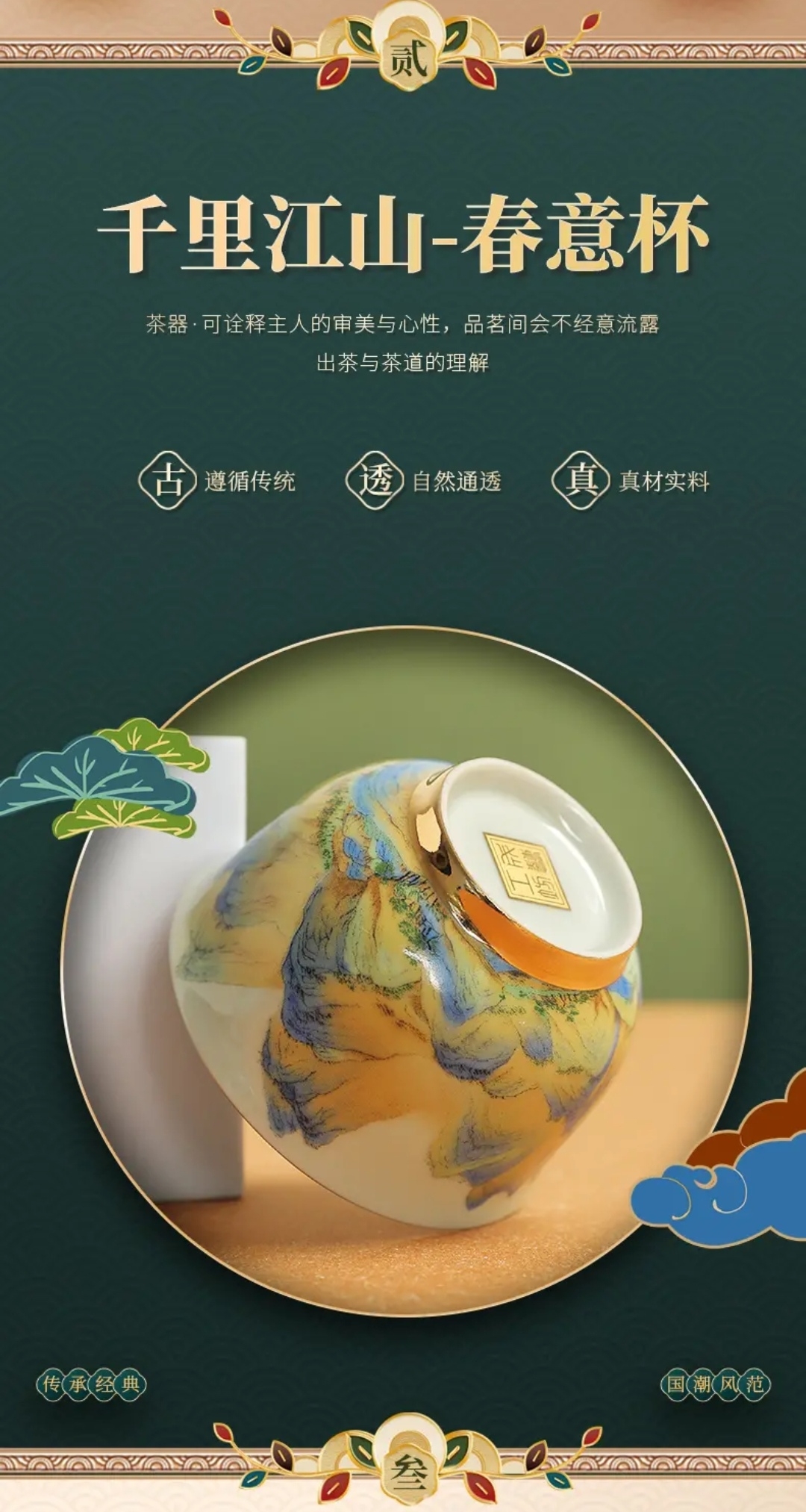 成艺陶瓷 千里江山反口手心杯 品茗杯 /山居图聚香杯/玛瑙红山水思缘杯 主人杯