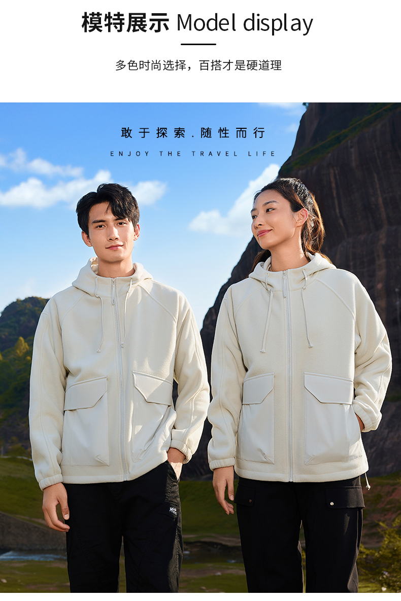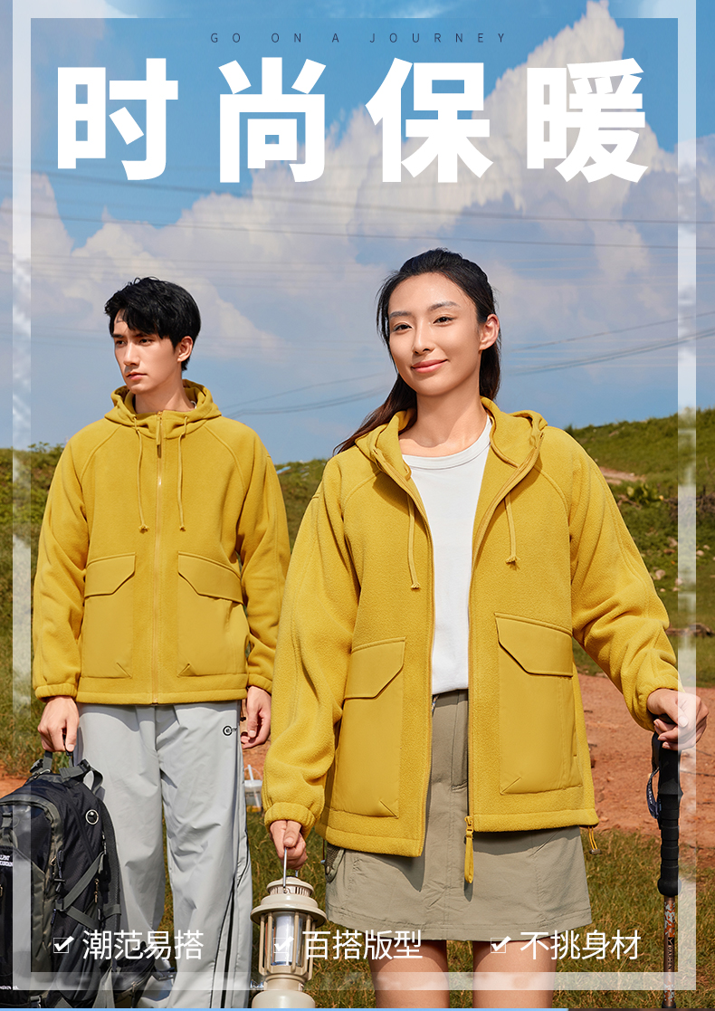 幸运鹿 情侣款重磅时尚潮流抓绒外套66010