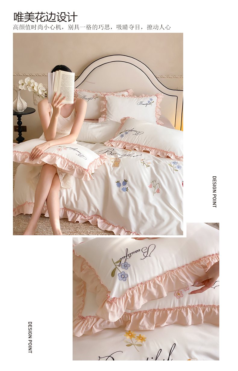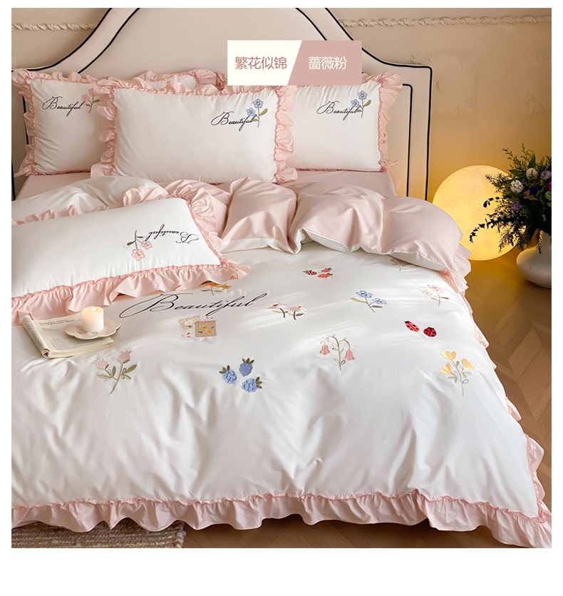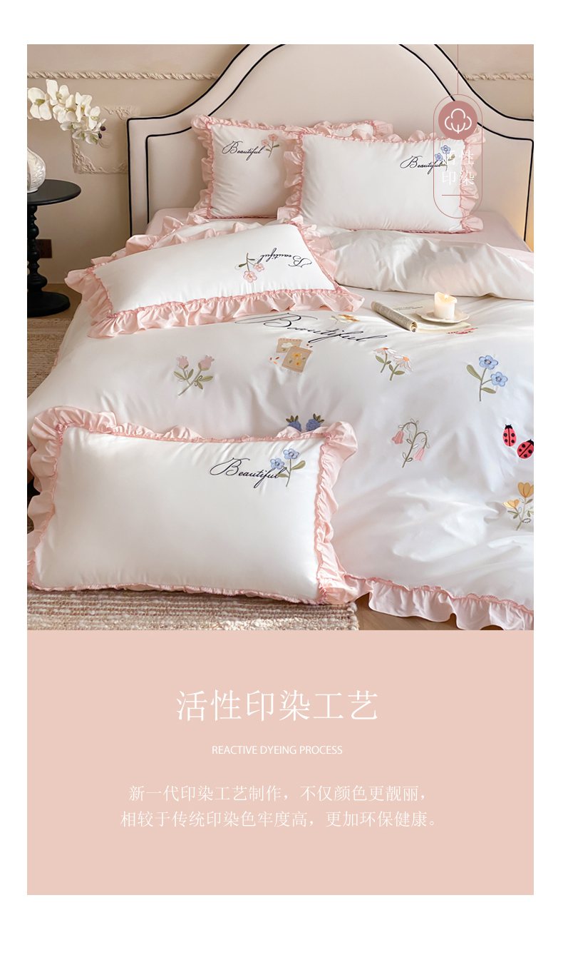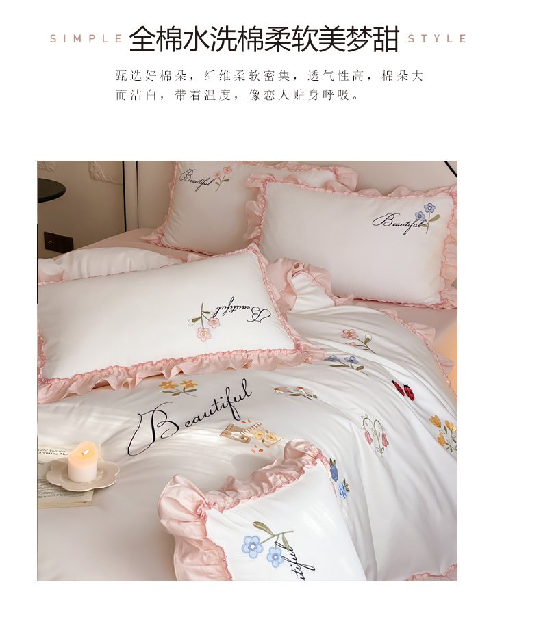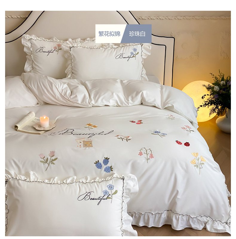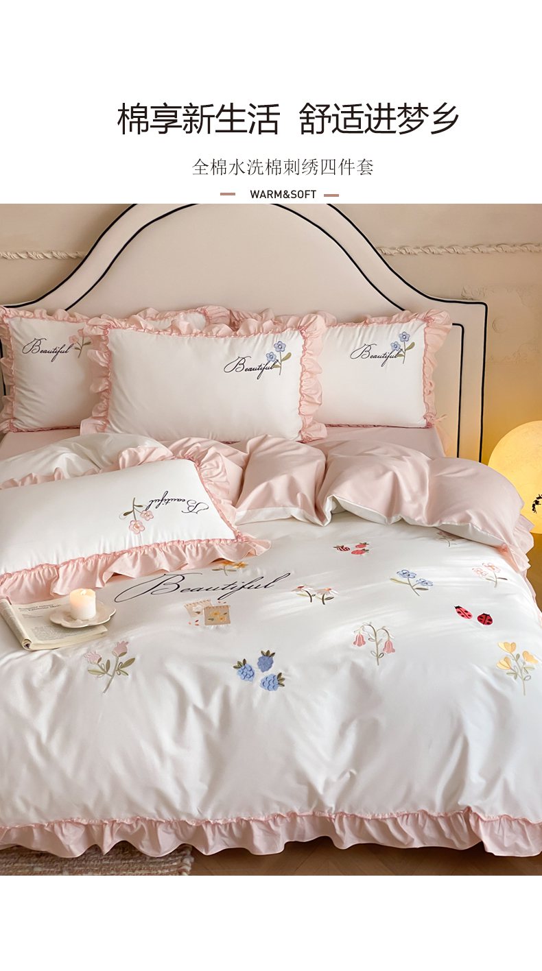 自然醒亲肤全棉水洗棉刺绣四件套-繁花似锦AN