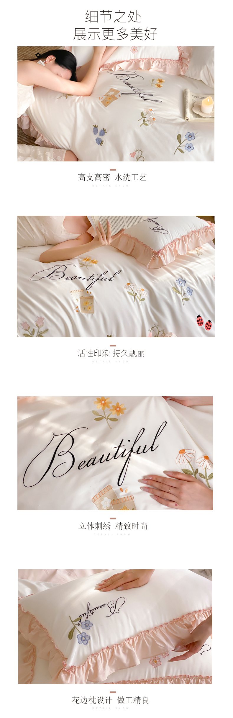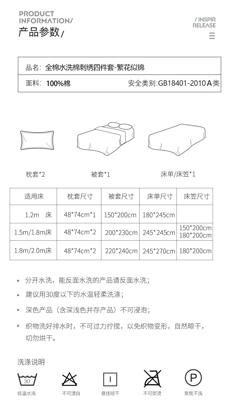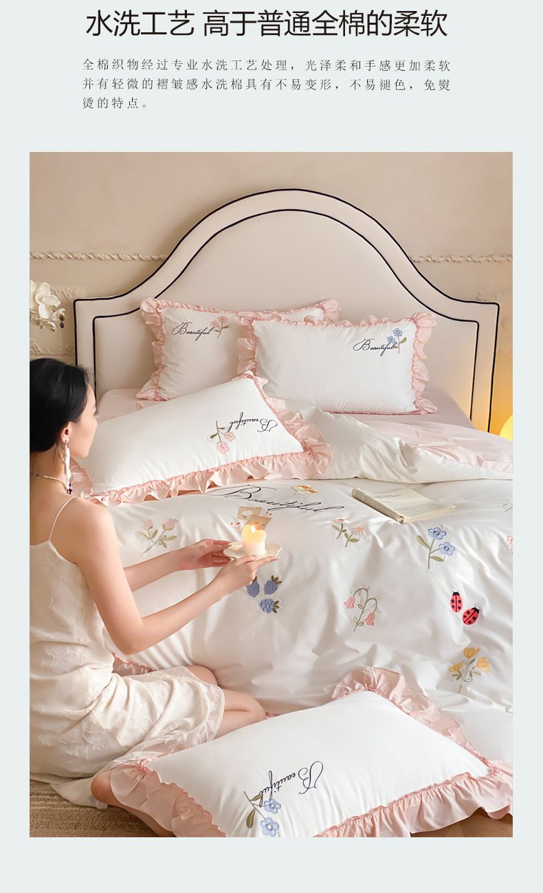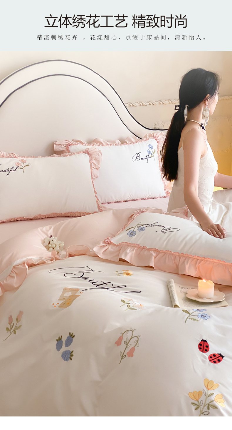 自然醒亲肤全棉水洗棉刺绣四件套-繁花似锦AN