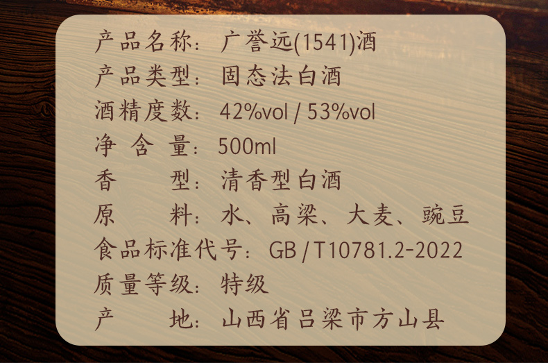 广誉远(1541)清香型白酒 42度/53度 500ml/瓶