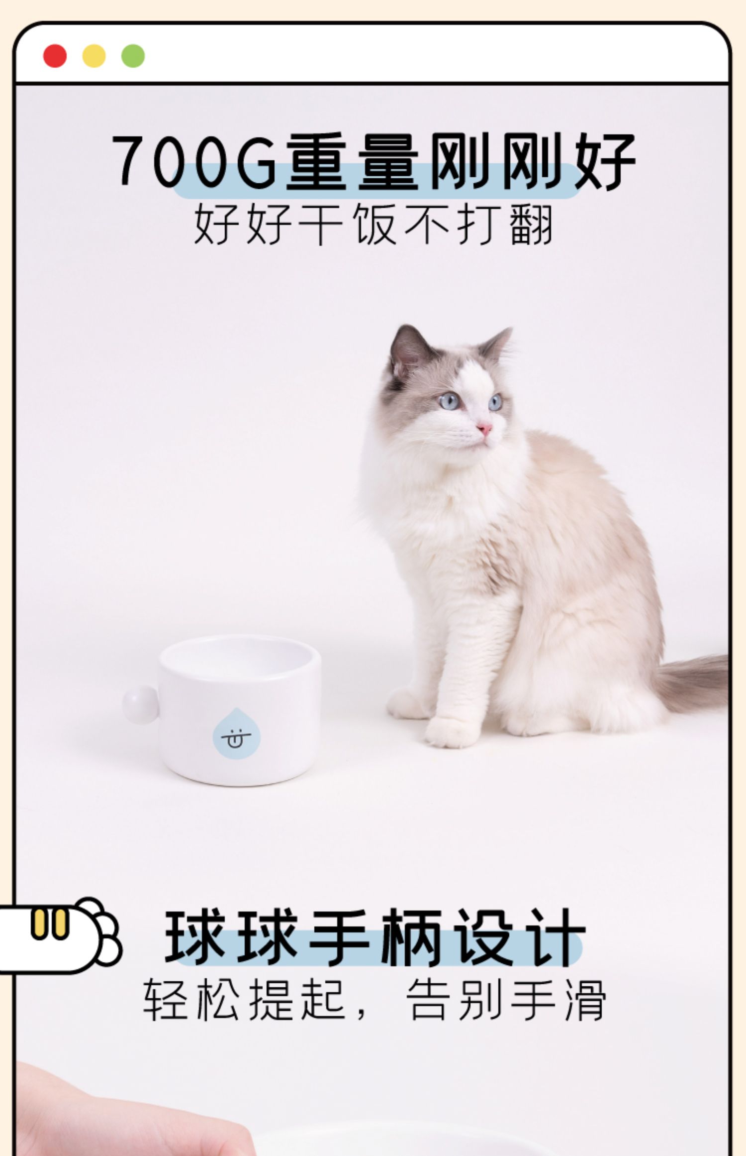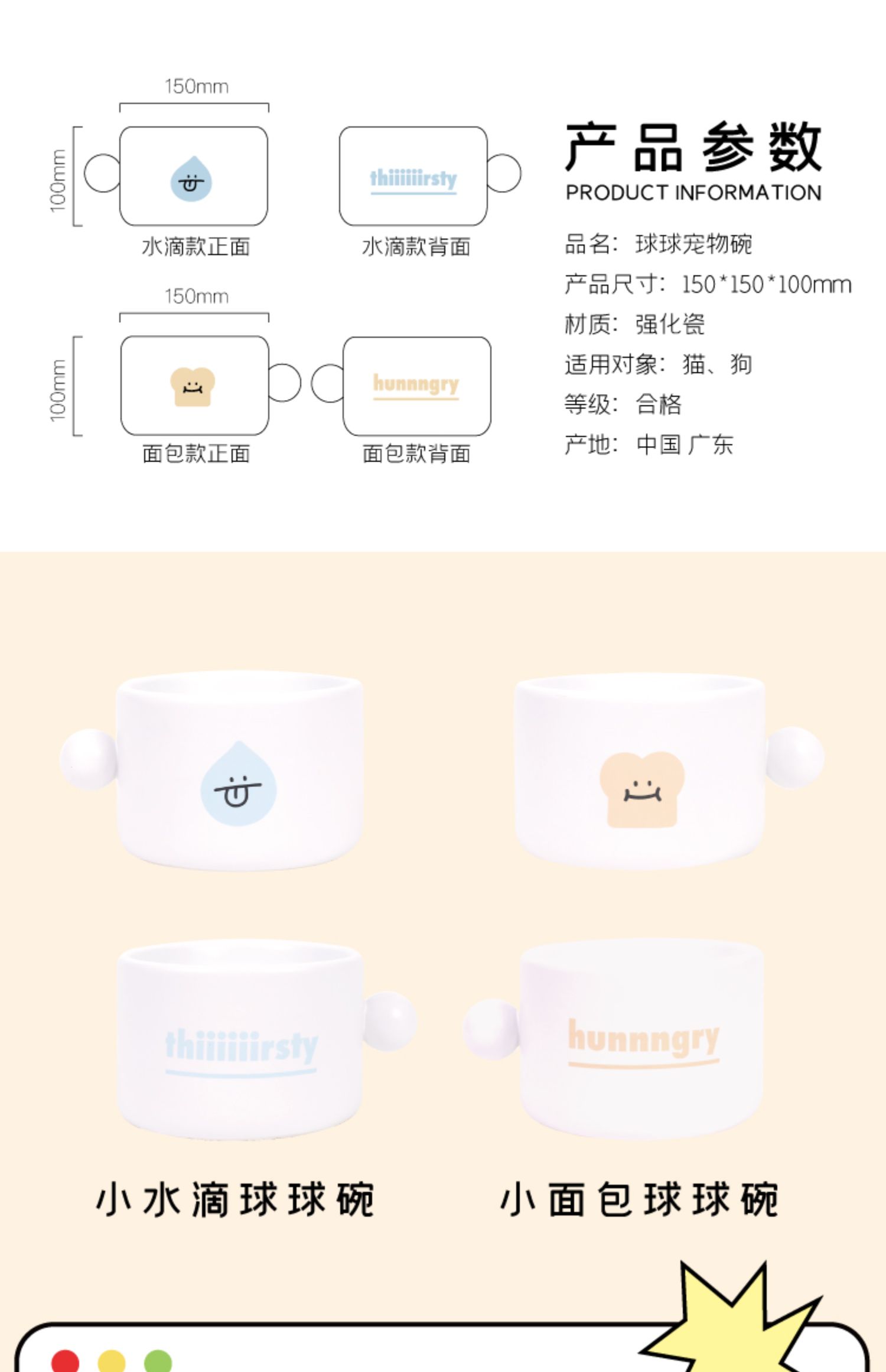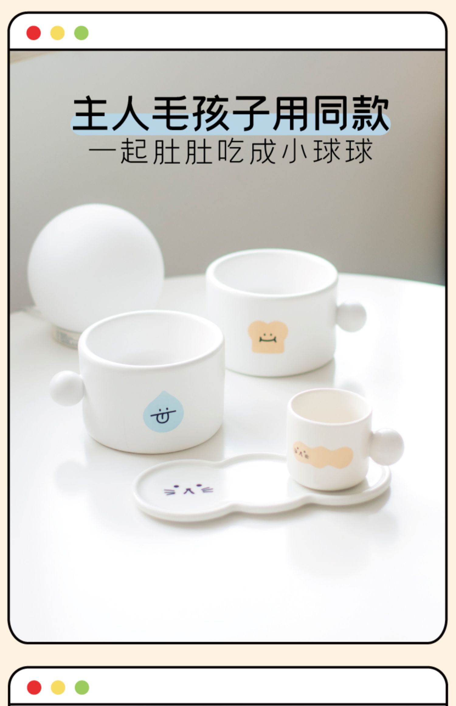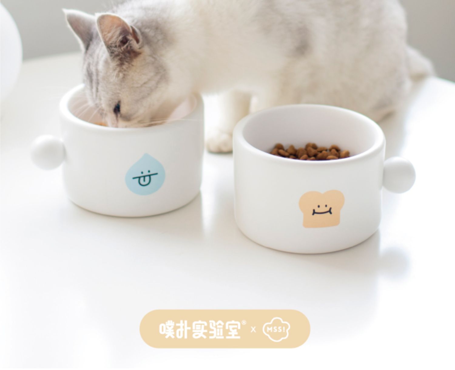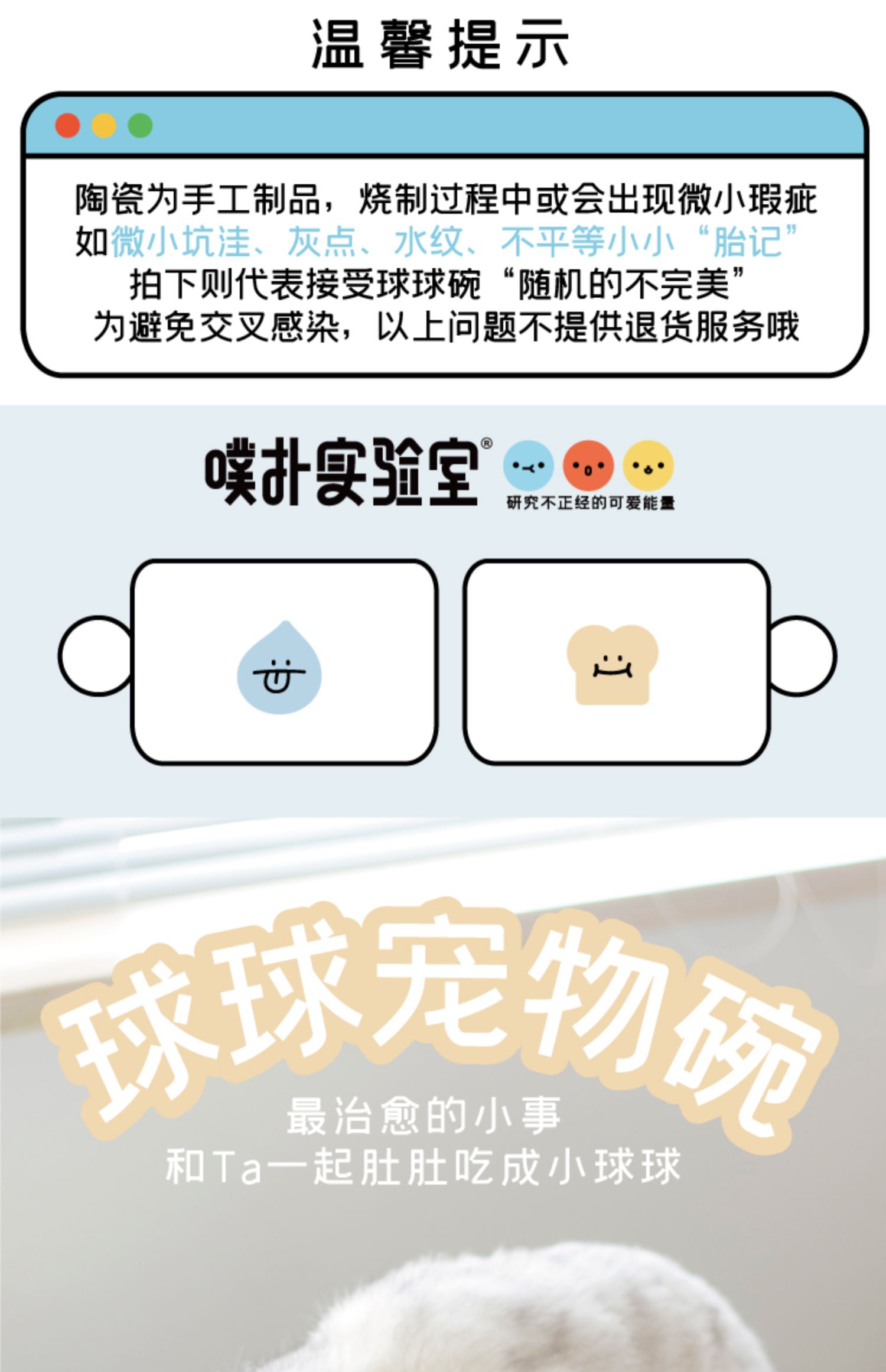 噗扑实验室球球宠物碗食盆小面包猫碗小水滴狗碗陶瓷防打翻护脊椎