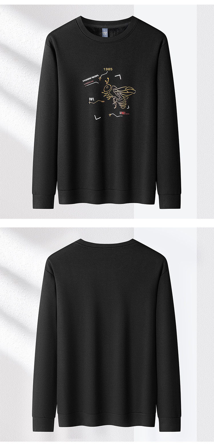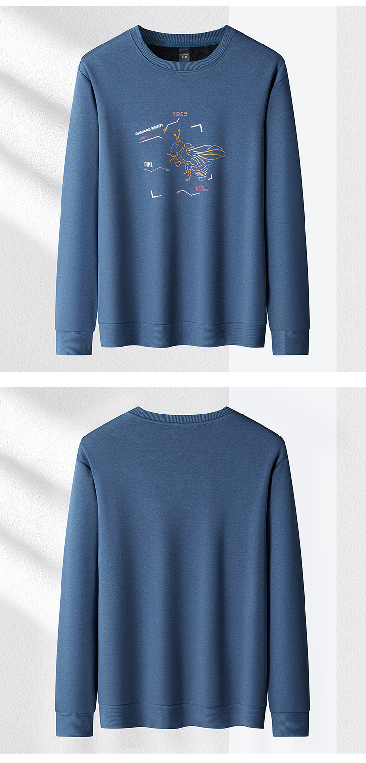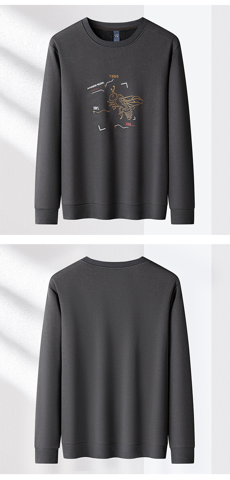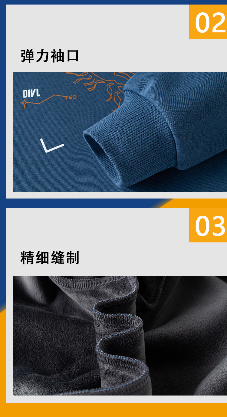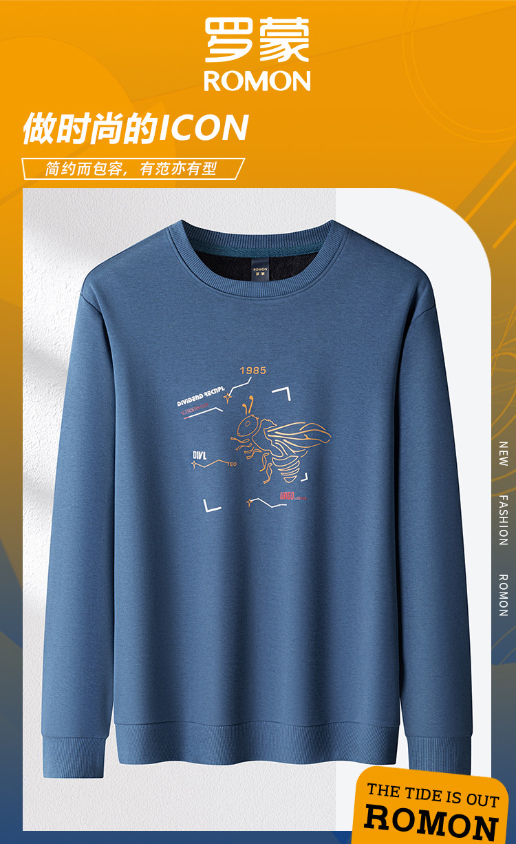【加绒加厚 桑蚕丝混纺】罗蒙秋冬男装加绒加厚保暖卫衣男士时尚休闲印花卫衣男长袖打底T恤