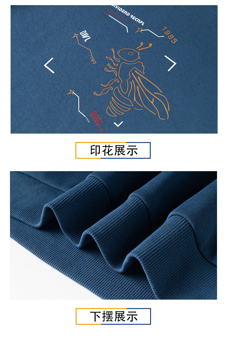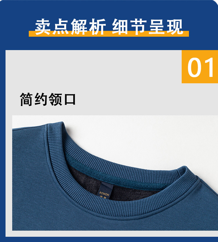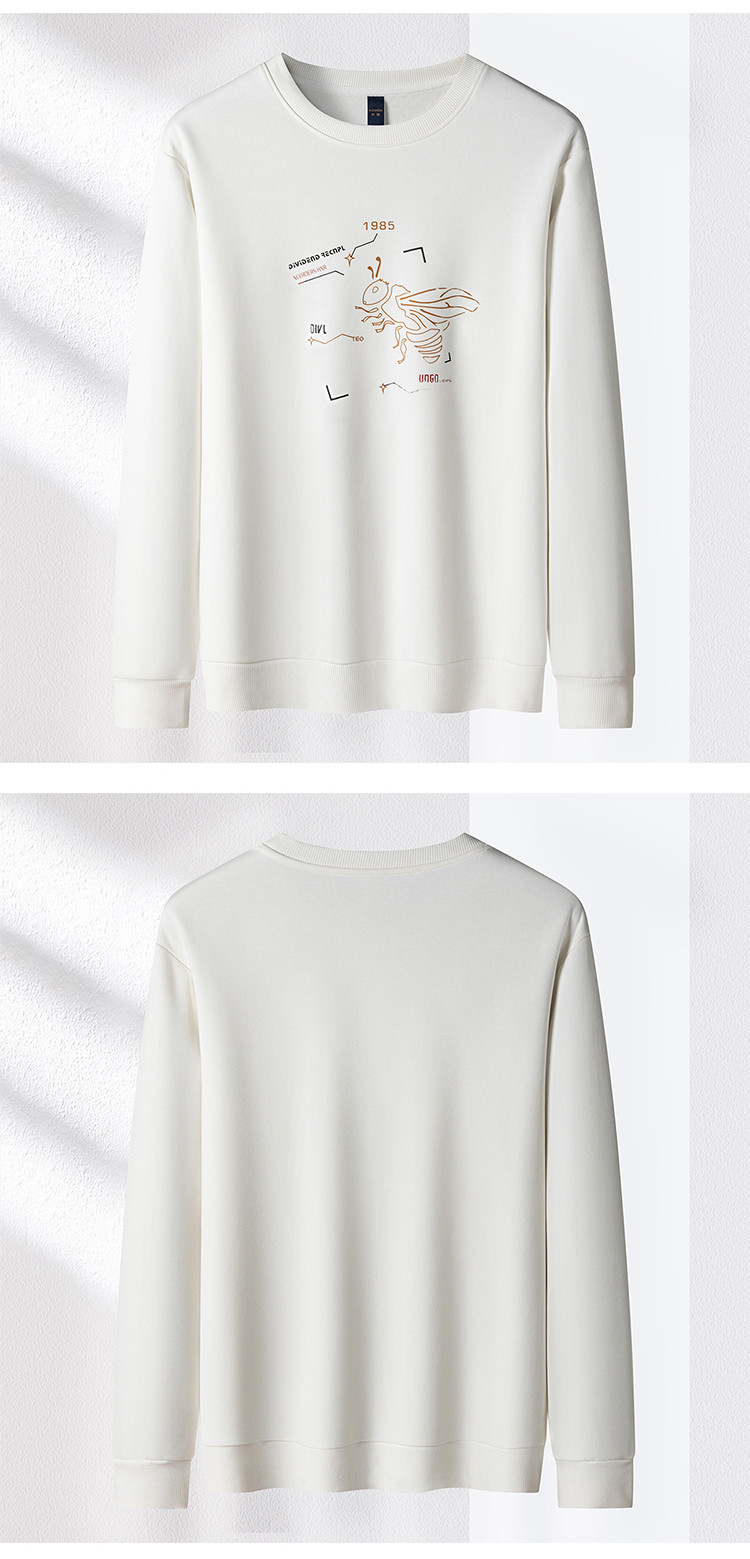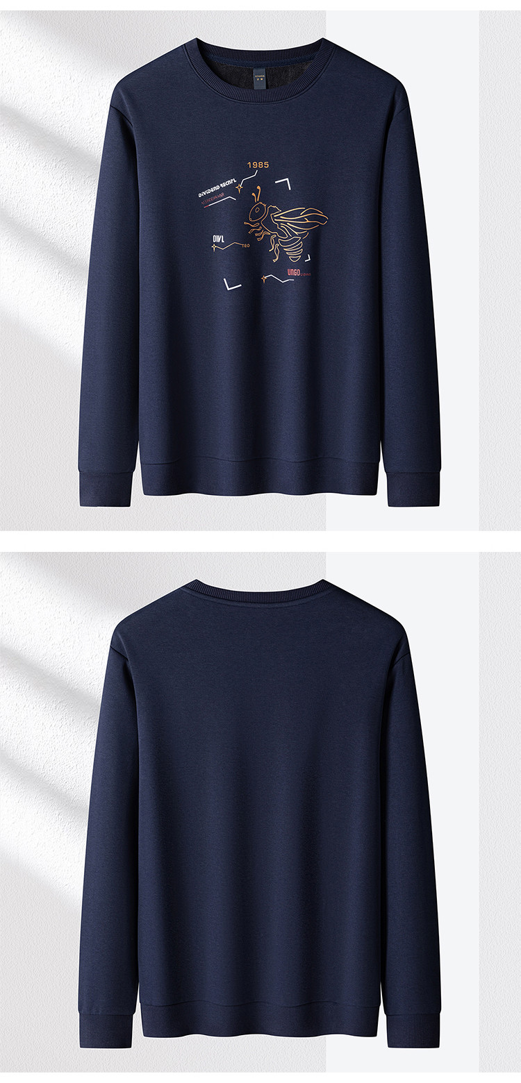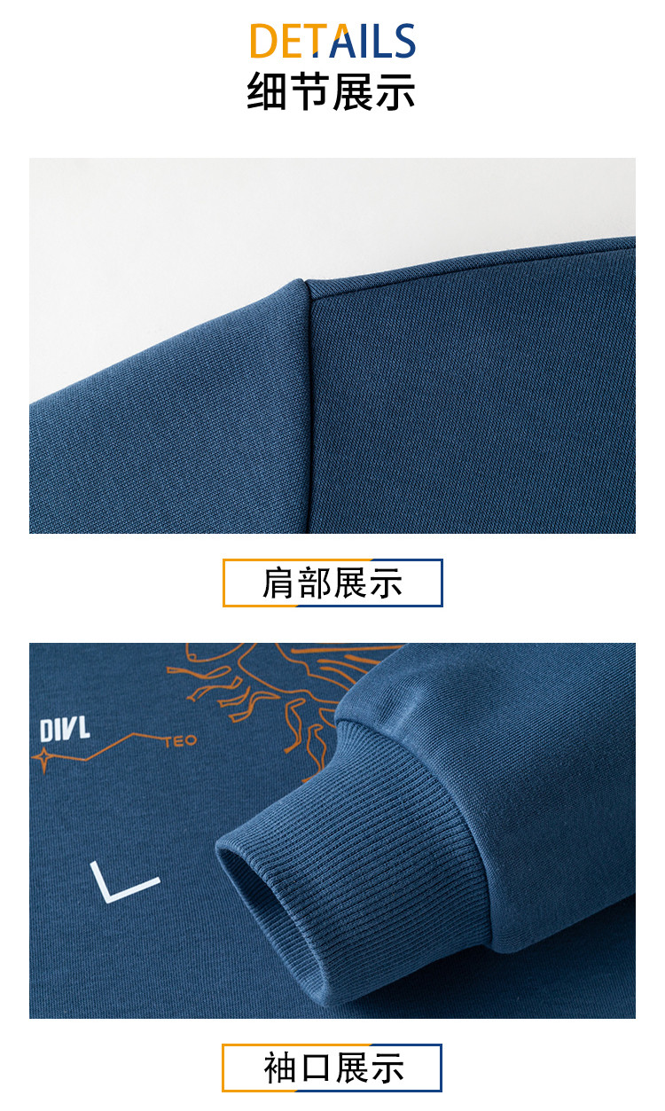 【加绒加厚 桑蚕丝混纺】罗蒙秋冬男装加绒加厚保暖卫衣男士时尚休闲印花卫衣男长袖打底T恤