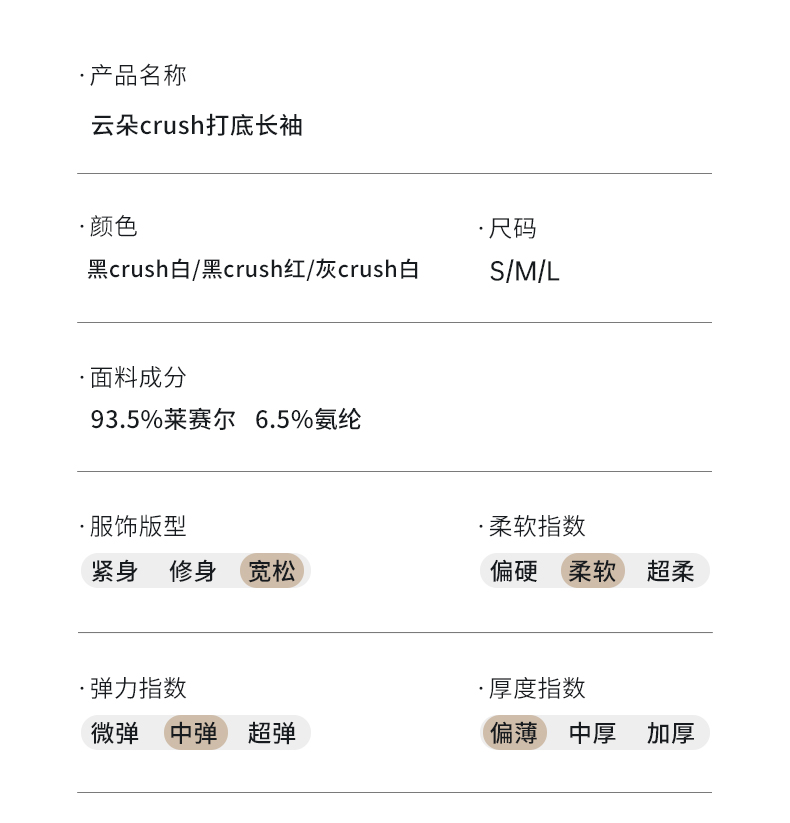 颗里 云朵crush兰精天丝撞色打底长袖【YW】【佳人严选】