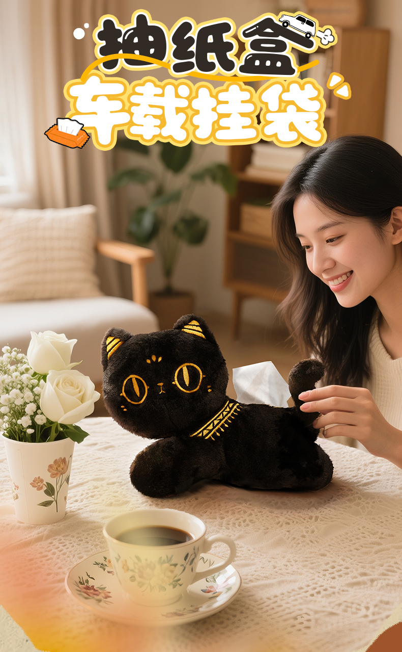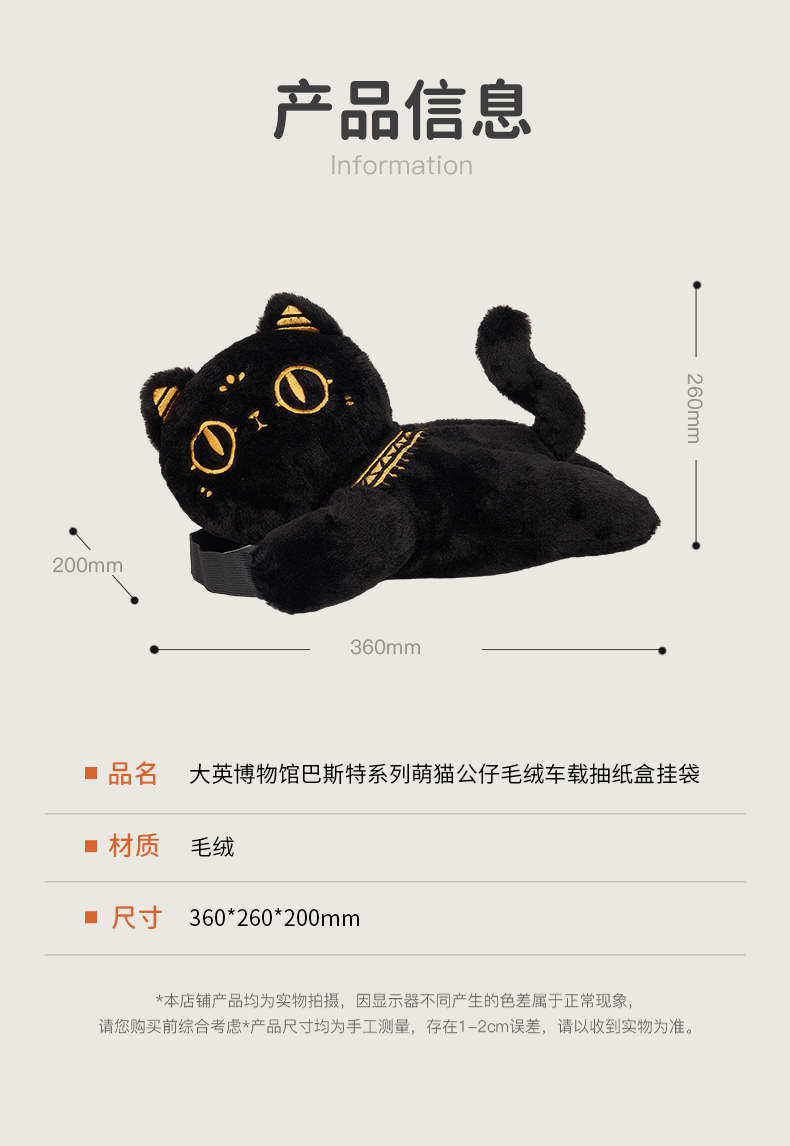 大英博物馆 巴斯特系列 萌猫公仔毛绒 车载抽纸盒挂袋