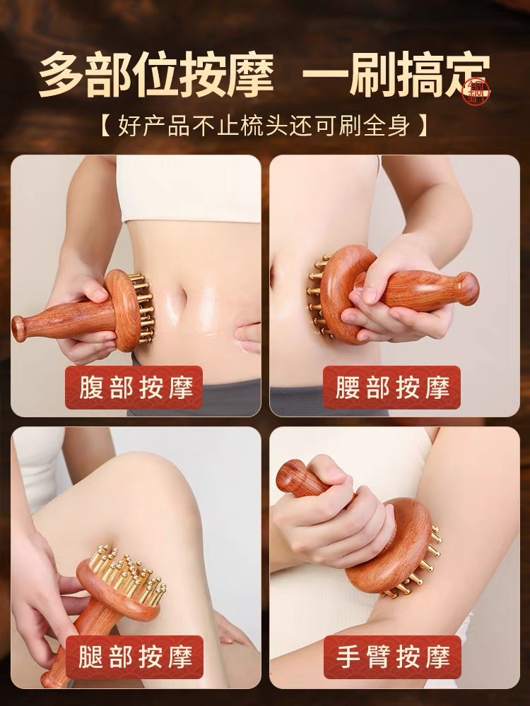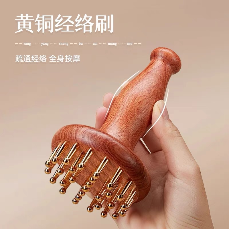 「黄铜梳齿!送精油+图」黄铜经络刷揉肚子全身通用按摩腹部疏通带脉刷头部居家日用刮痧经络按摩梳