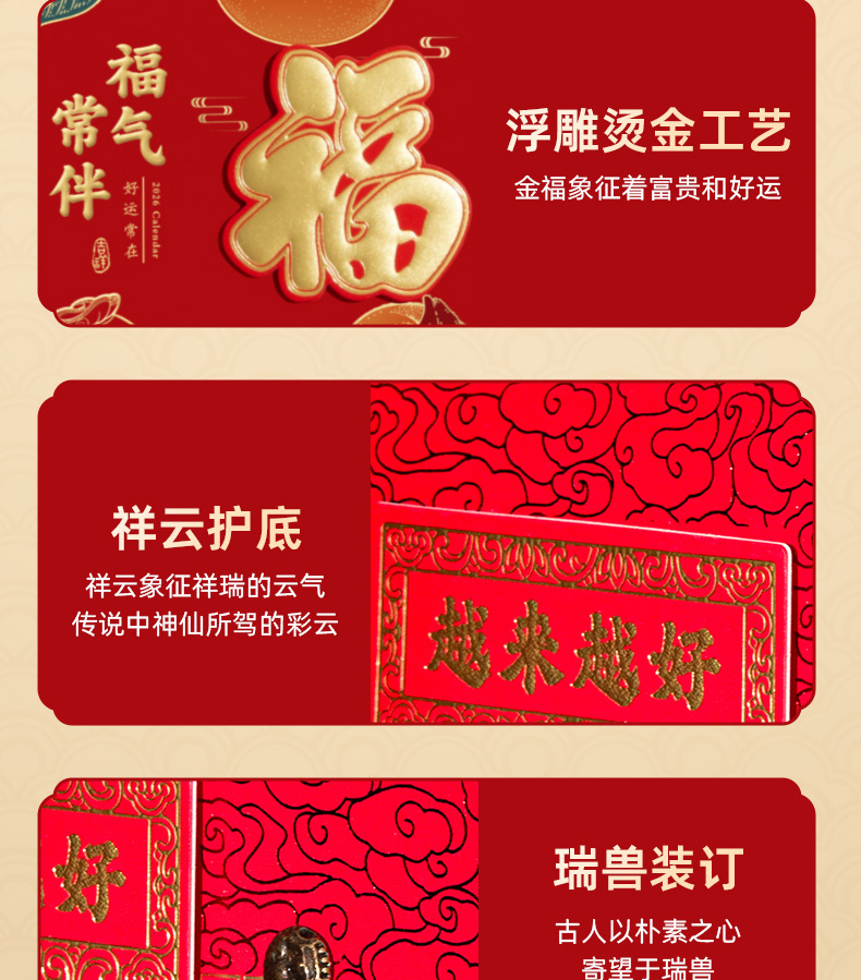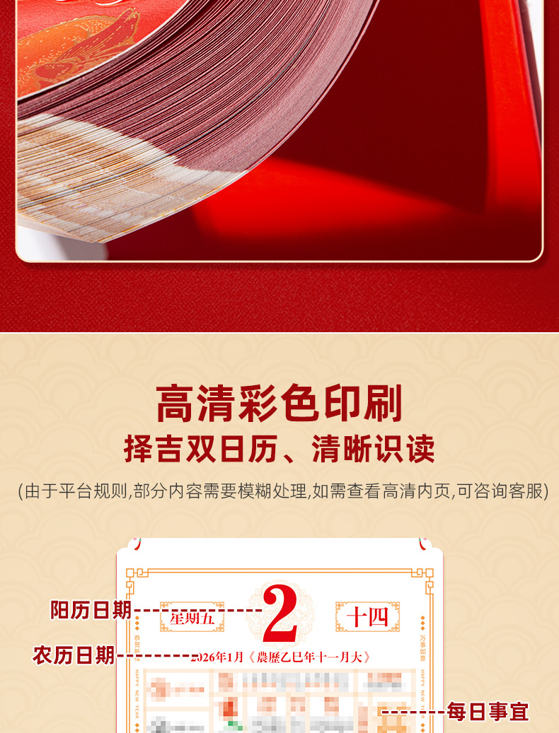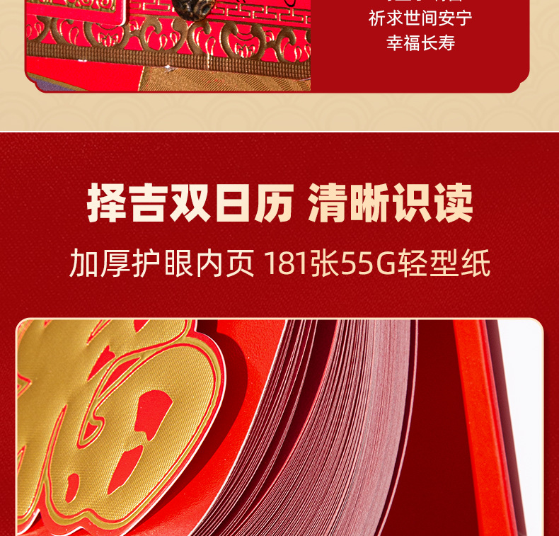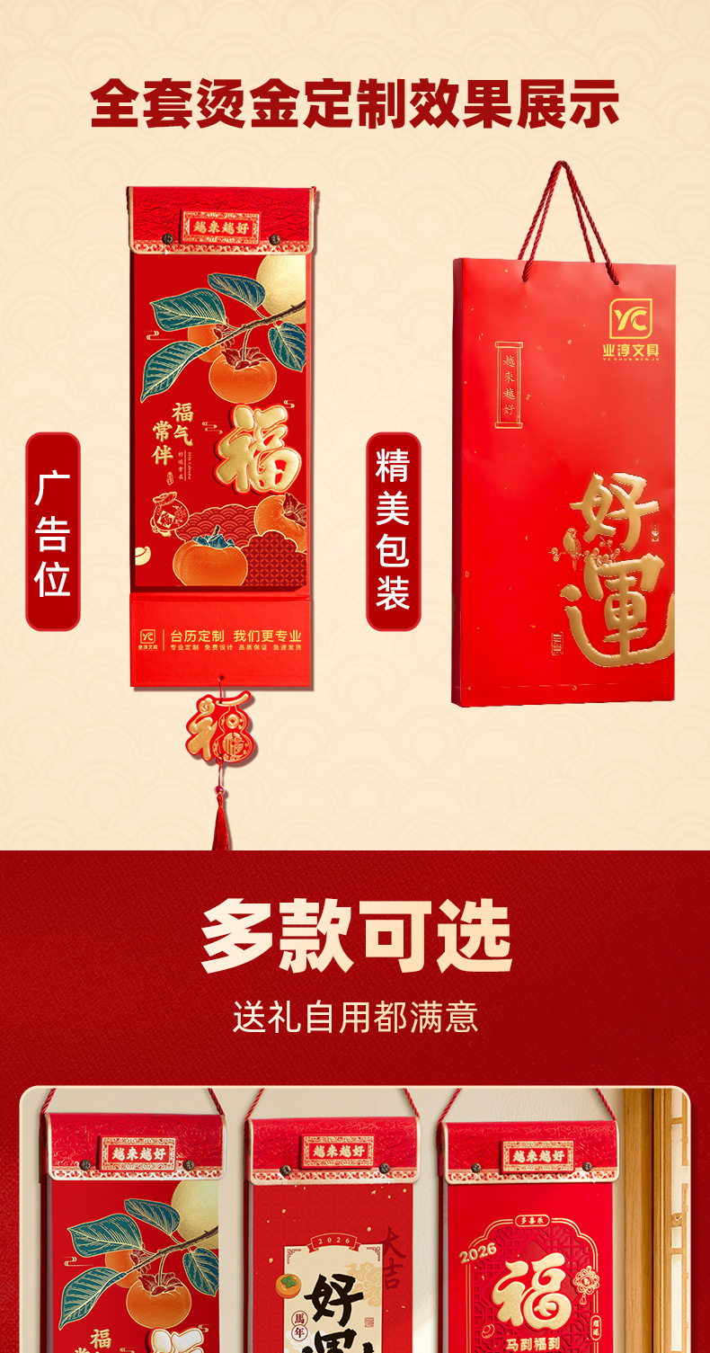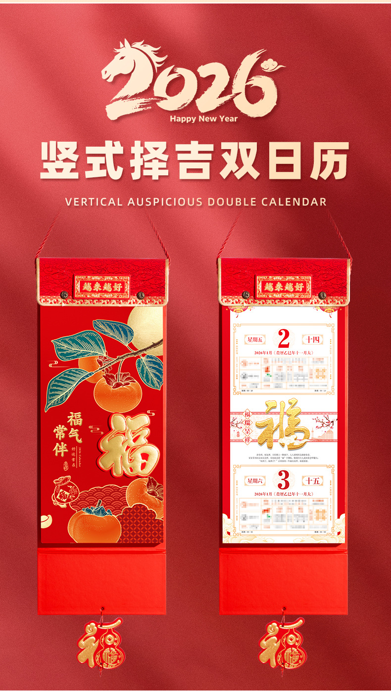 2026马年挂墙手撕老皇历 福字撕历万年历挂历 马到福到双日择吉撕历日历