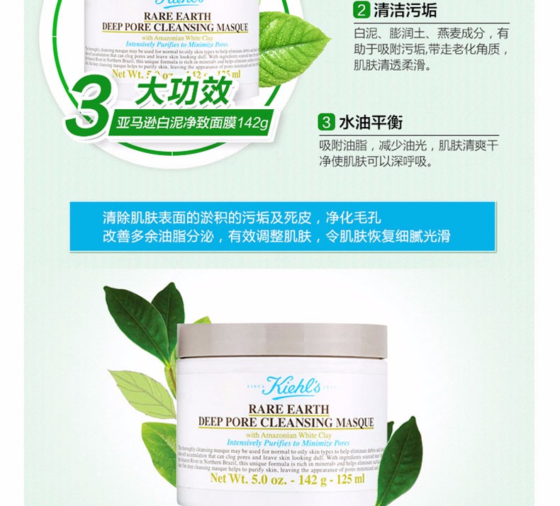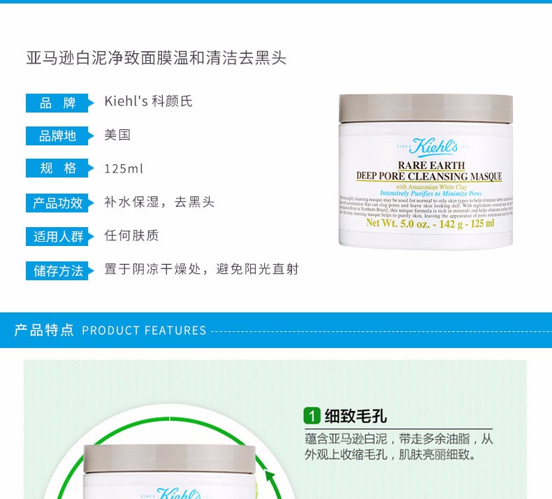 KIEHLS 科颜氏 亚马逊白泥清洁面膜 125ml 美国