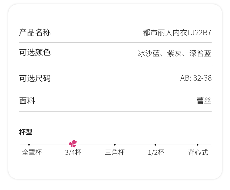都市丽人少女三步优选B杯调整型内衣锁边薄3/4杯少女文胸四排扣无钢圈LJ22B7
