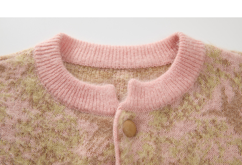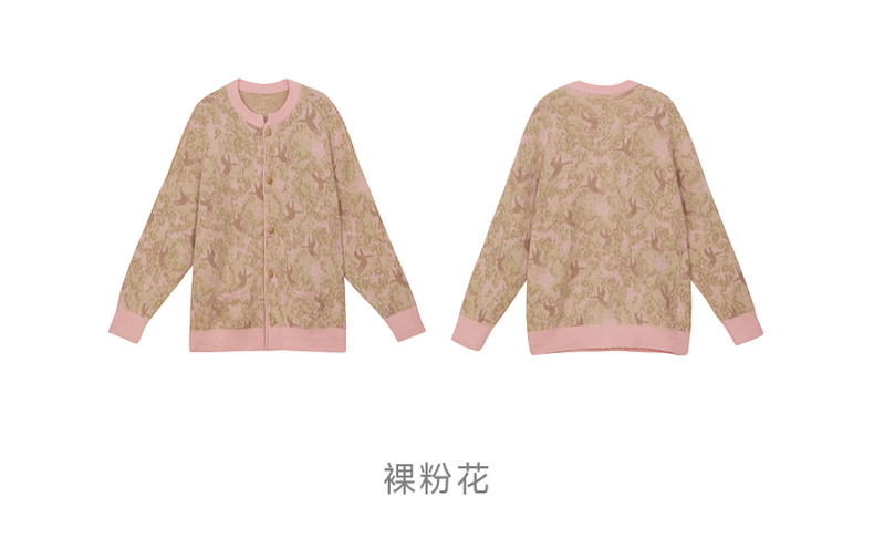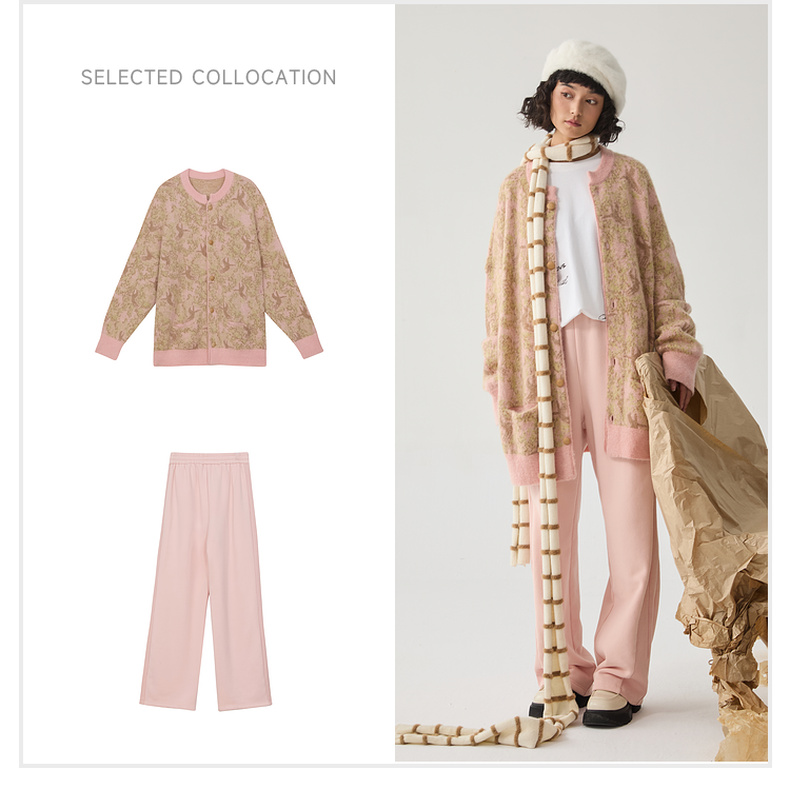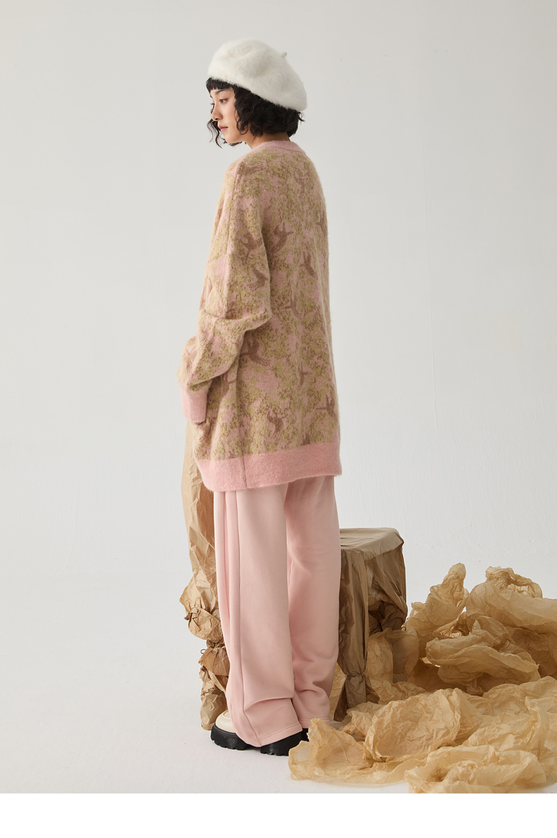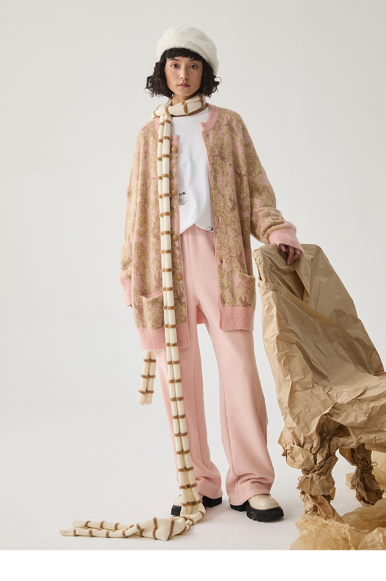 谜底针织开衫女2024冬季新品复古风提花中长款宽松毛衣244MZ1859