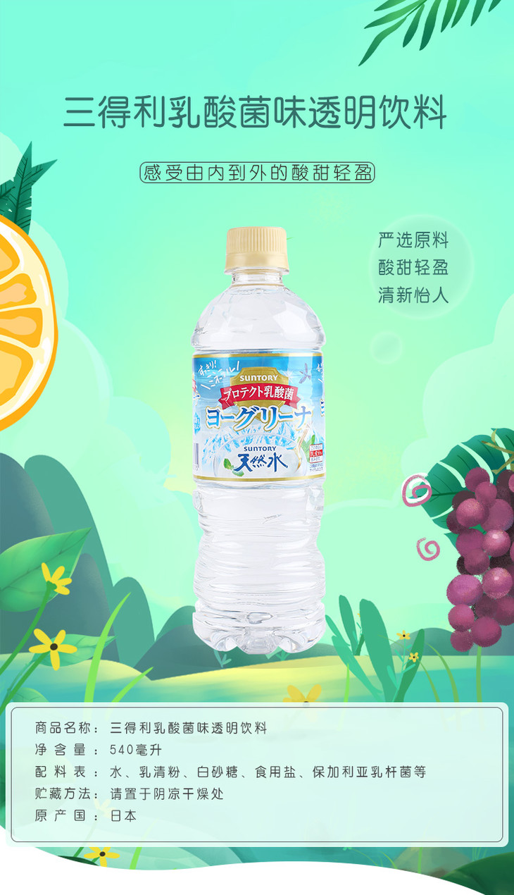 日本三得利SUNTORY透明水乳酪乳酸菌味饮料矿泉水 540ml(285705)