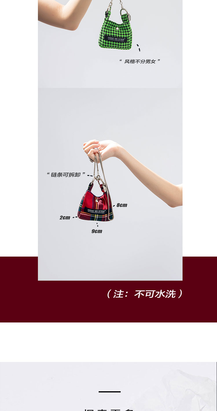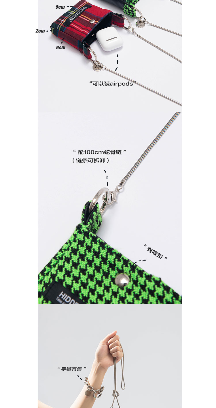 HIDDENNOTES l 2021新款复古小众红格子迷你耳机包斜挎链条造型包