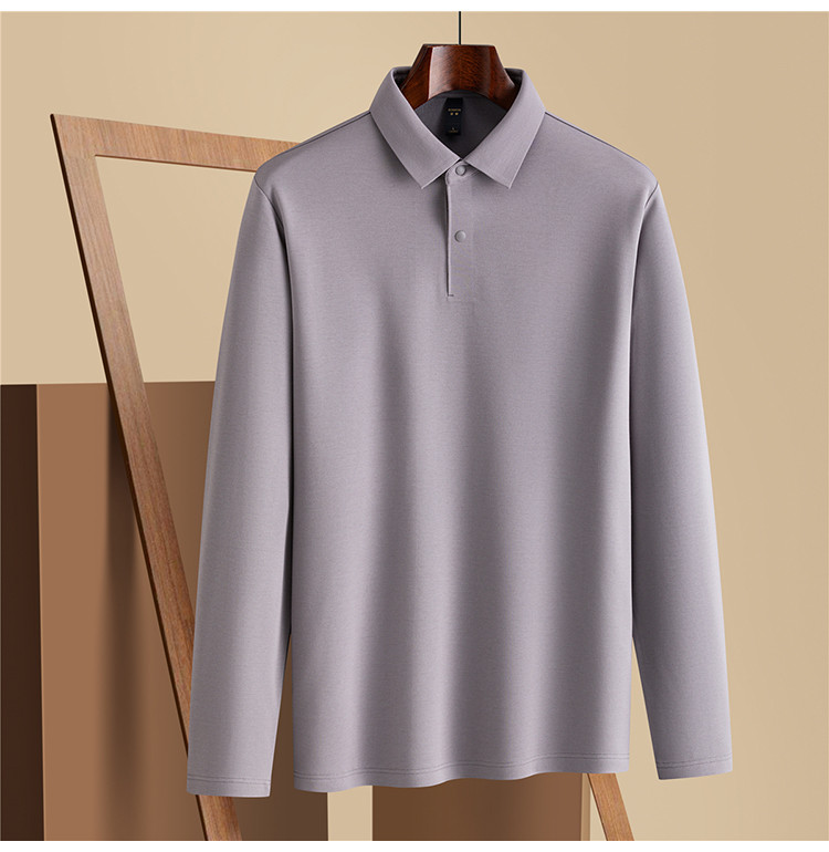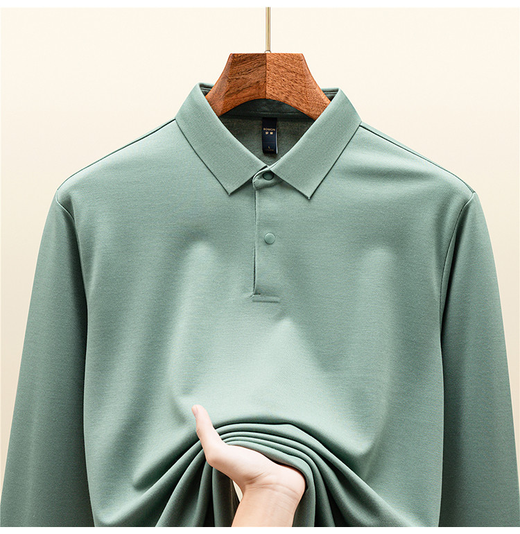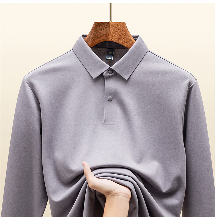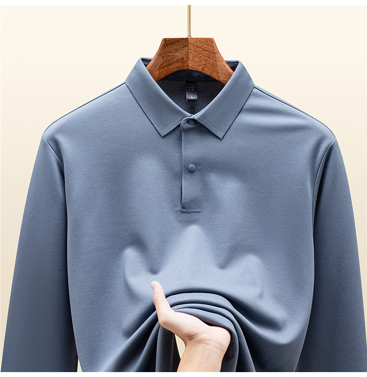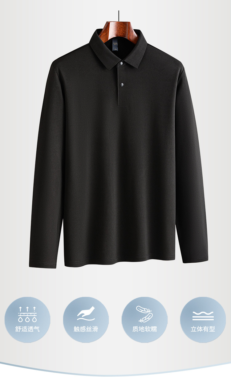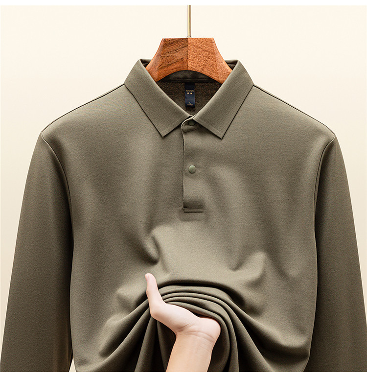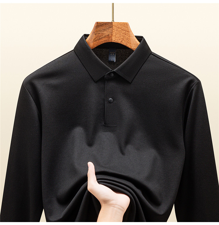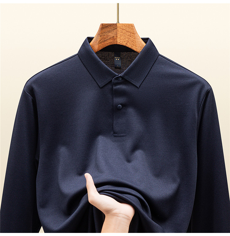 【羊毛蚕丝混纺 磨毛保暖】罗蒙秋冬男装7A抗菌磨毛长袖polo衫男士商务休闲内搭长袖t恤男