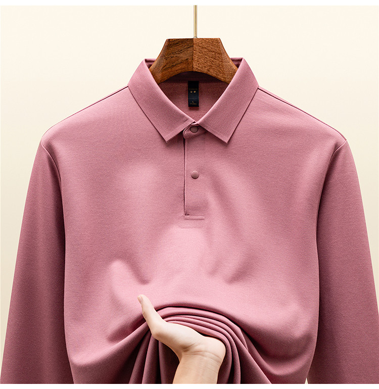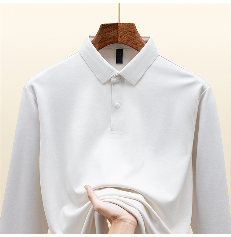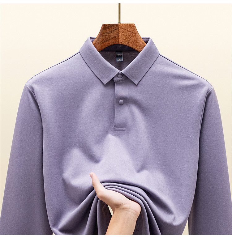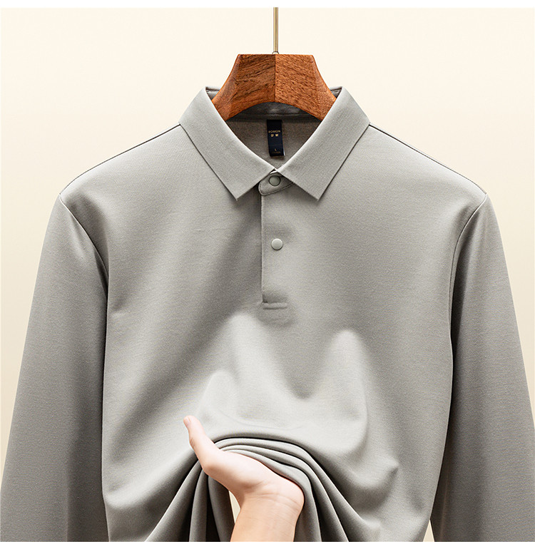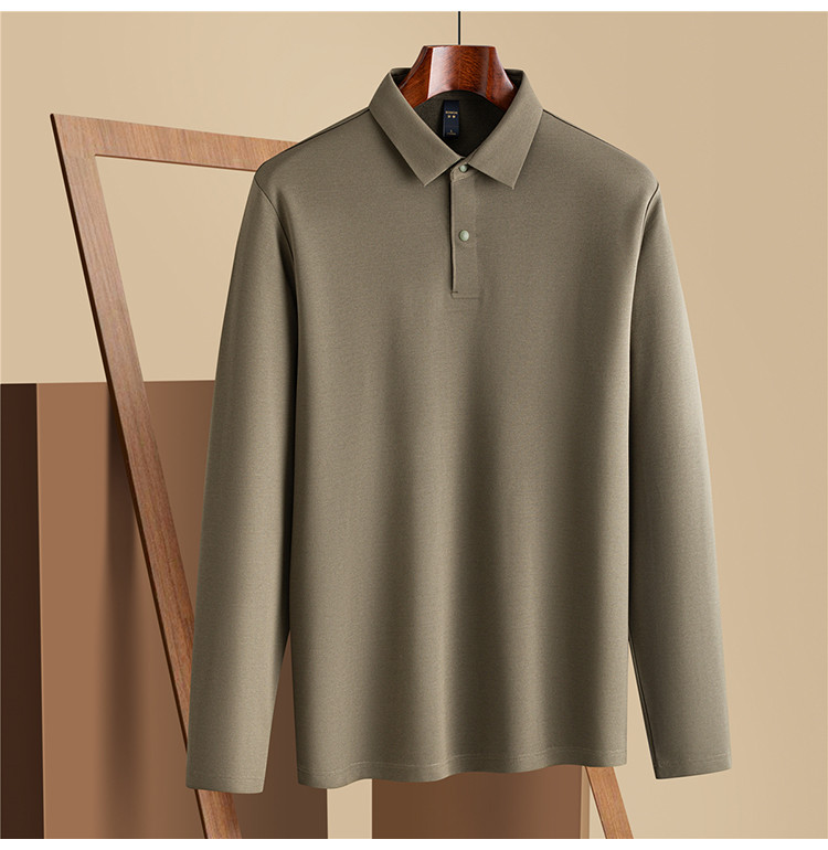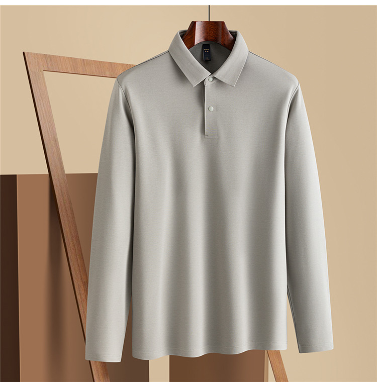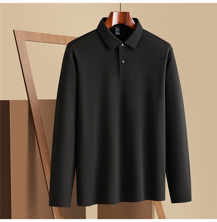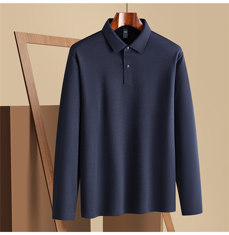 【羊毛蚕丝混纺 磨毛保暖】罗蒙秋冬男装7A抗菌磨毛长袖polo衫男士商务休闲内搭长袖t恤男