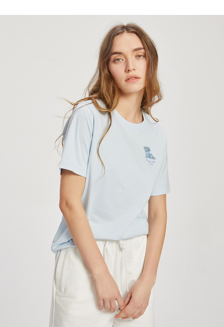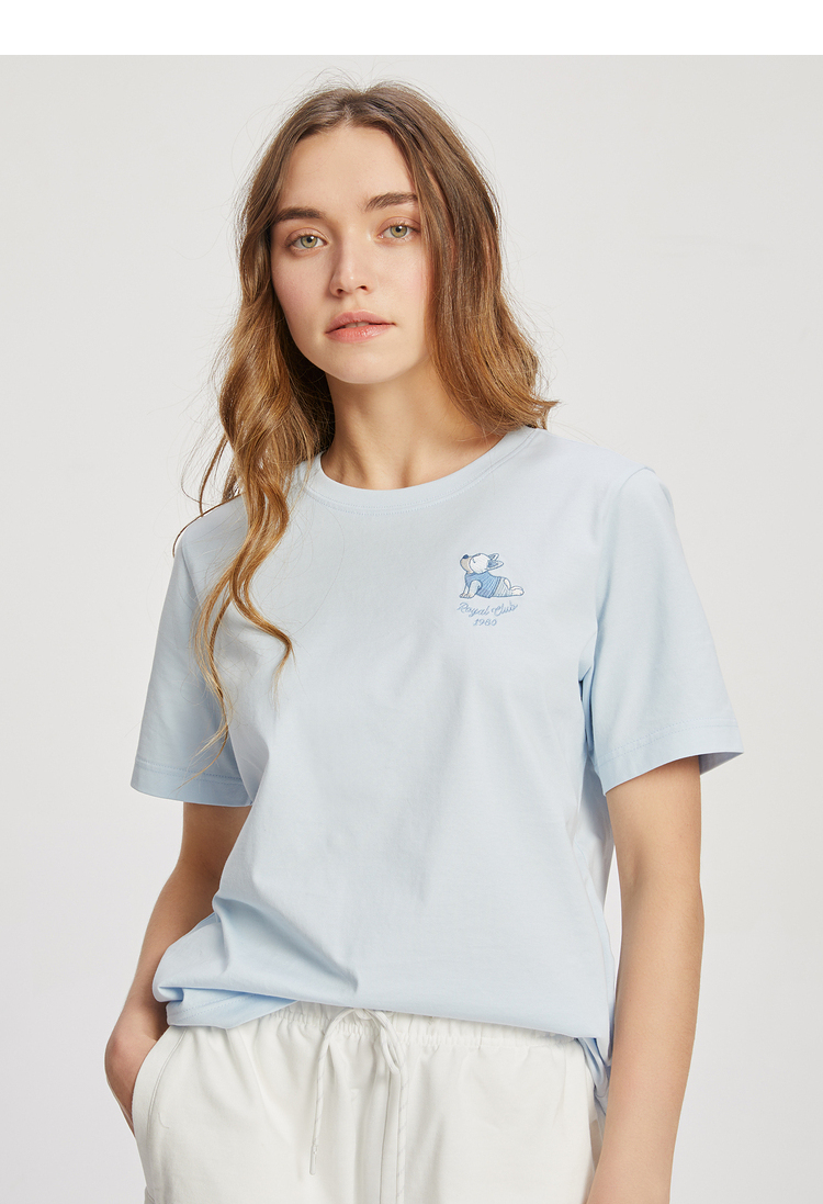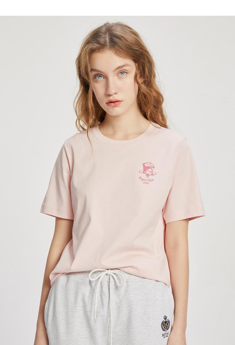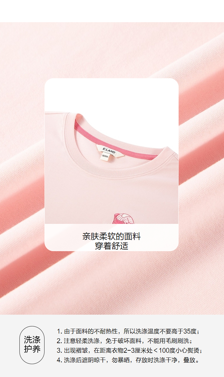 ELAND依恋2022夏季新款甜美学院风圆领直筒T恤短袖女EERAC24E1M