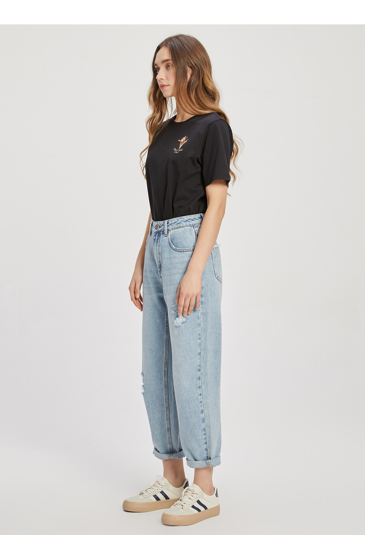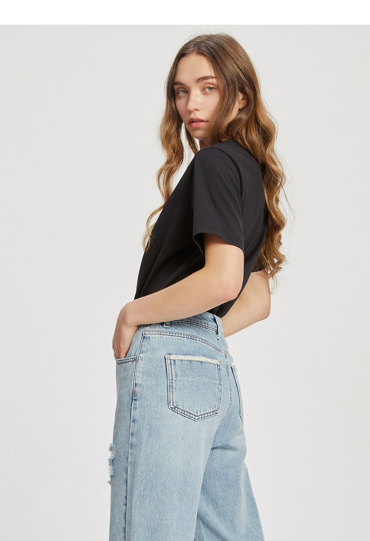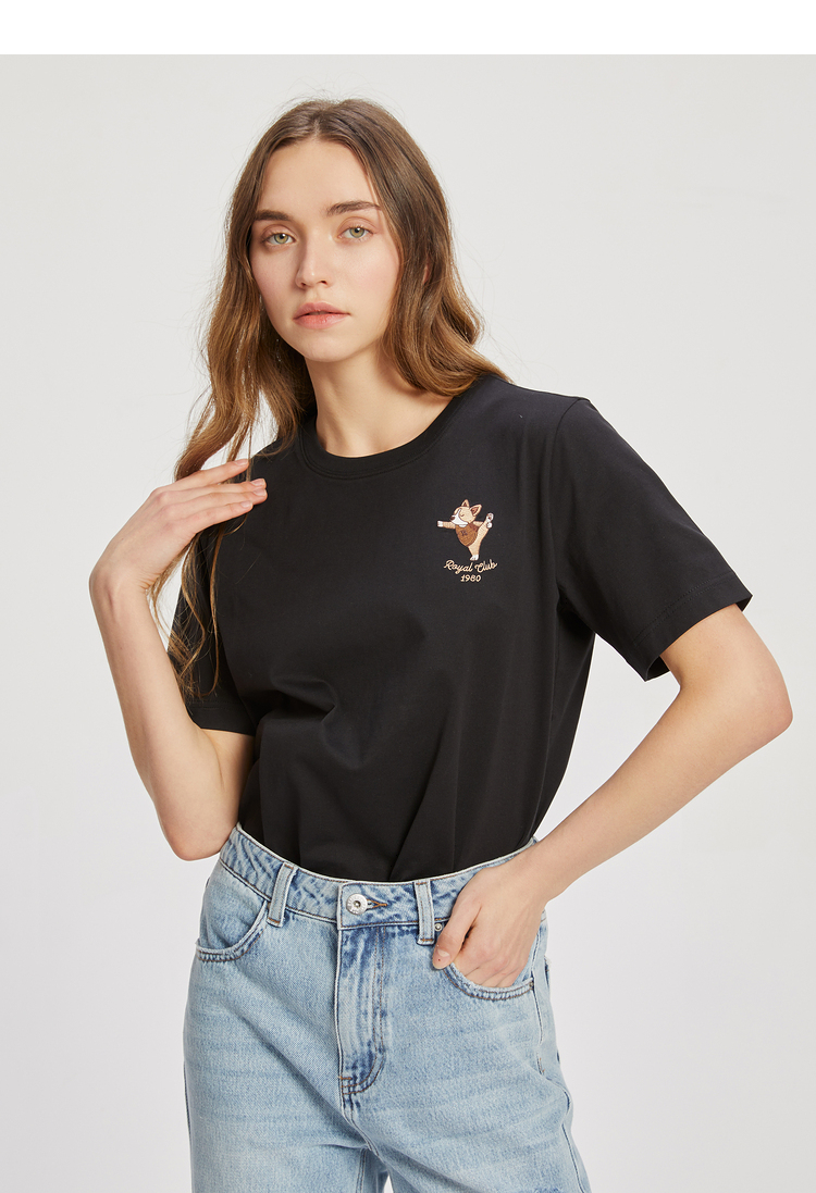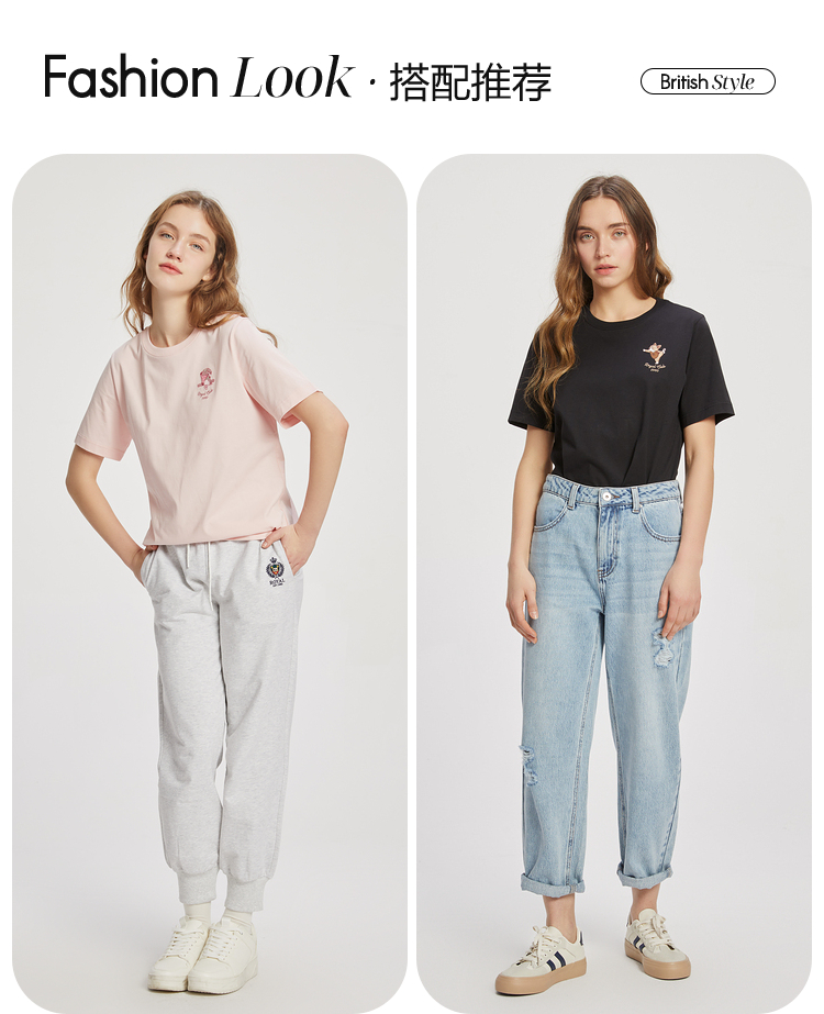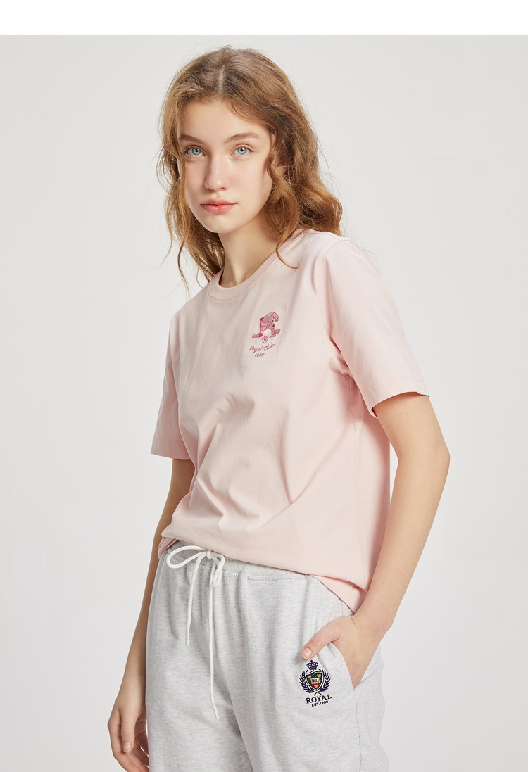 ELAND依恋2022夏季新款甜美学院风圆领直筒T恤短袖女EERAC24E1M