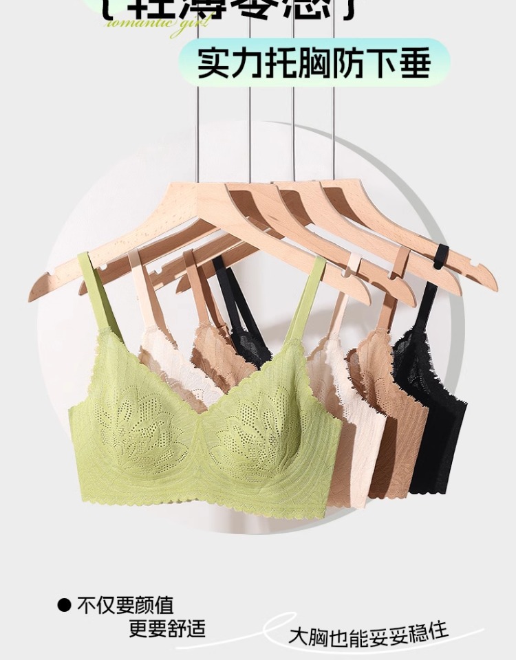 内衣女大胸显小无痕舒适美背薄款收副乳防下垂性感蕾丝提拉文胸罩2025新款爆款小红书同款