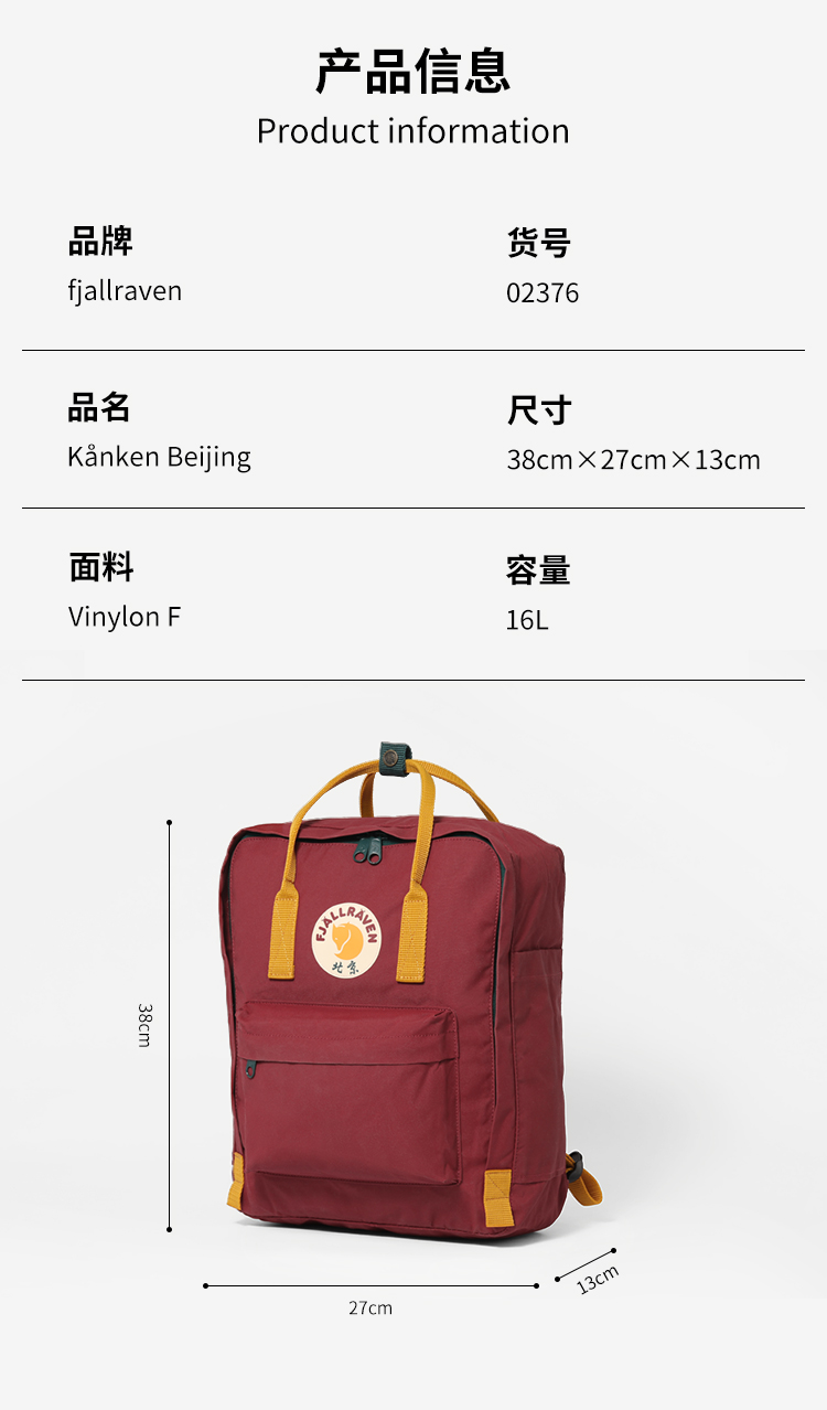 Fjallraven北极狐男女Kanken Beijing经典旅行16L双肩背包02376