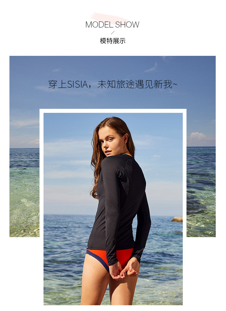 sisia新款沙滩防晒外套长袖黑色防走光游泳冲浪潜水瑜伽服外套女SS201W08S7A