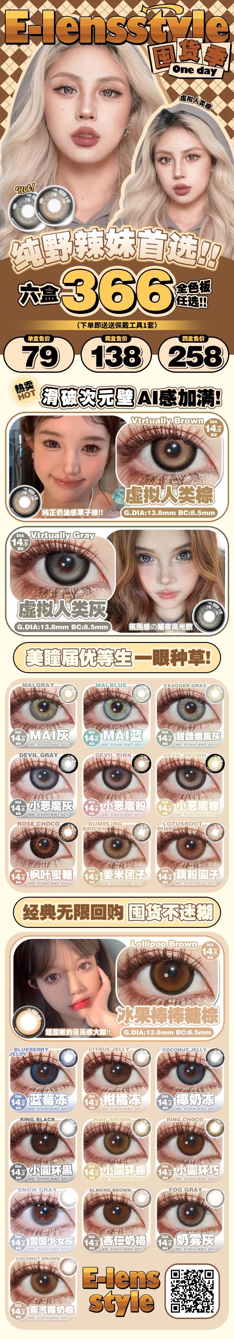 (热卖活动)E-lensstyle日抛 79/盒 138/2盒 258/4盒 (0-800度 不含525/575)