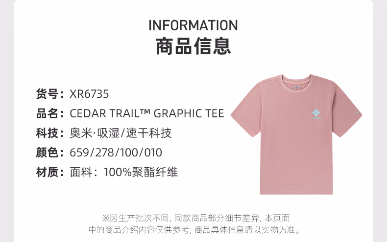 哥伦比亚女式速干短袖T恤XR6735