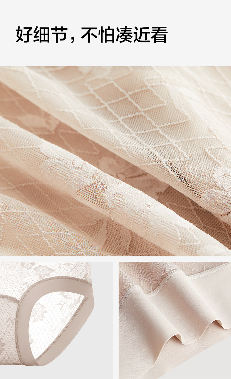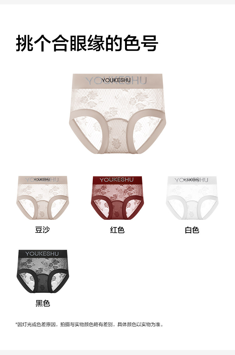 【新品上新】有棵树性感透气收腹抗菌桑蚕丝裆高腰蕾丝内裤女士三角裤3条装-U5030
