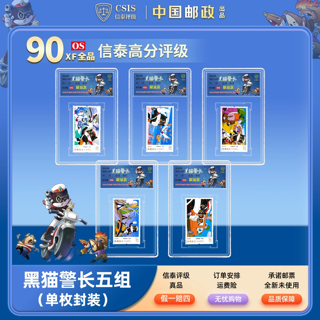 【中国邮政】2022年黑猫警长动画邮票五枚小盒限量套装(信泰评级)