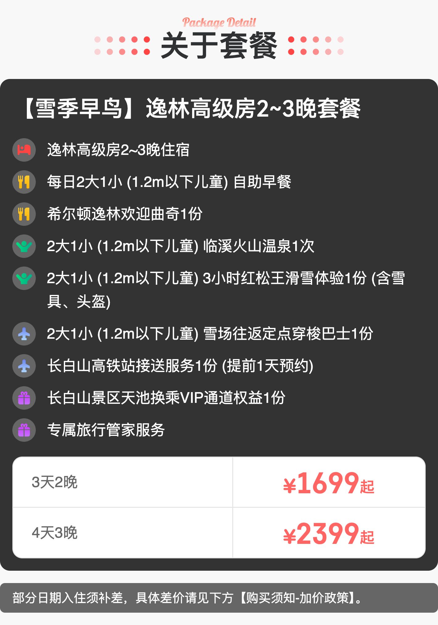 雪季早鸟!2~3晚【长白山希尔顿逸林温泉酒店】寒假/元旦可用!含2大1小滑雪权益、临溪火山温泉、景区VIP通道、长白山高铁站接送等,长白山滑雪早鸟早订才划算~