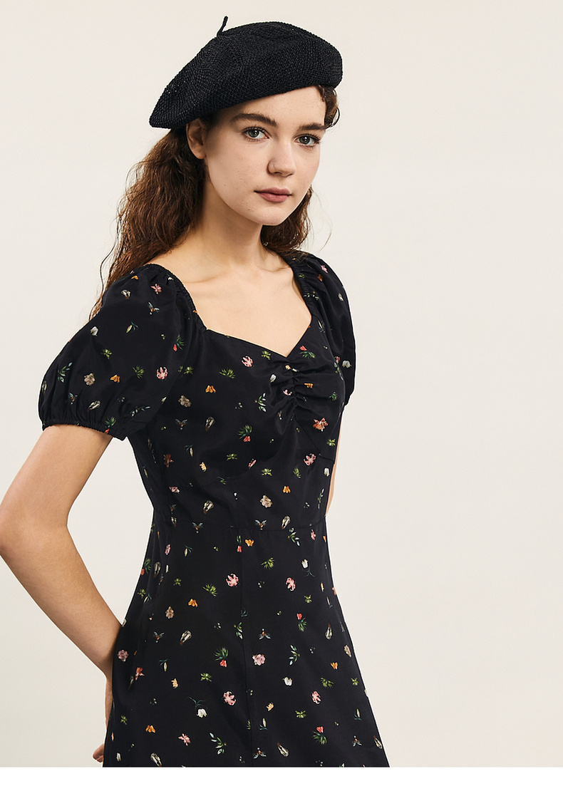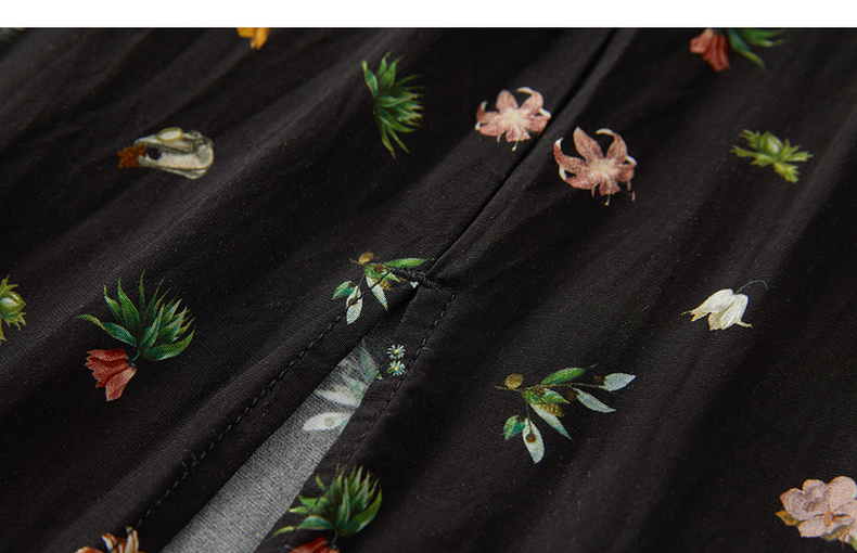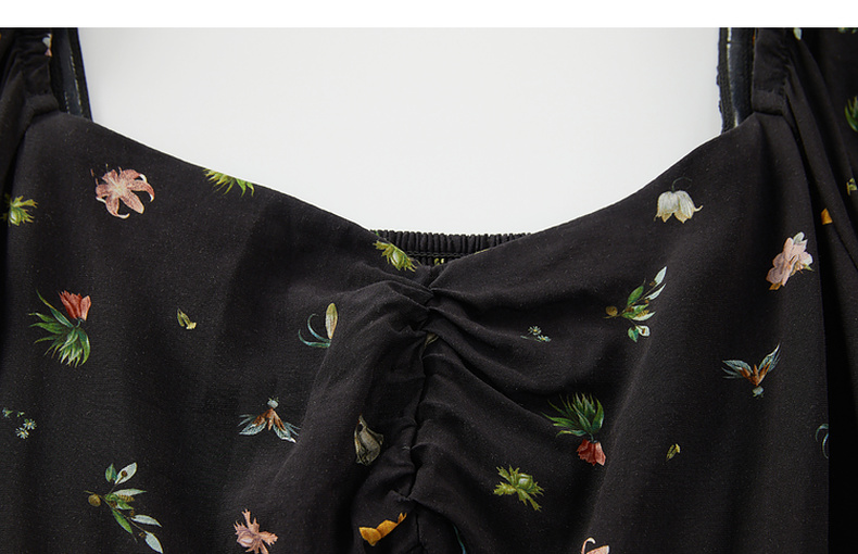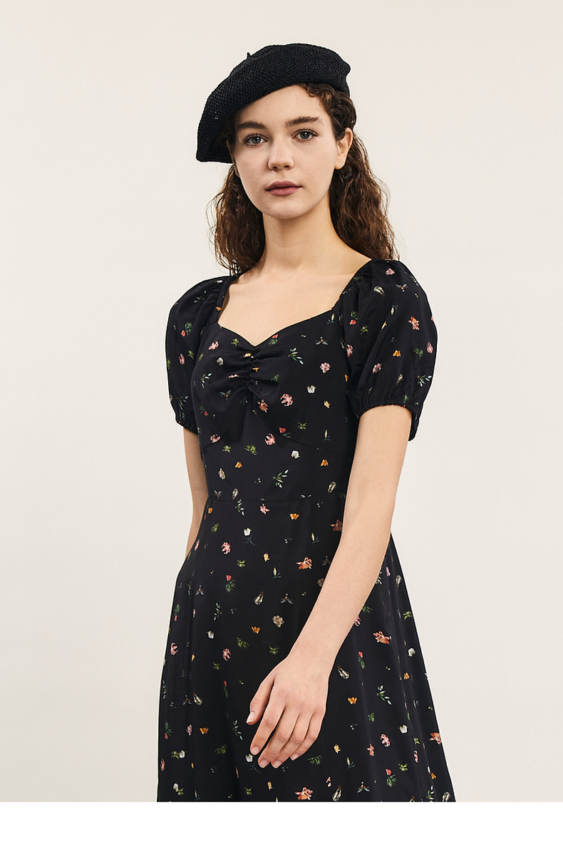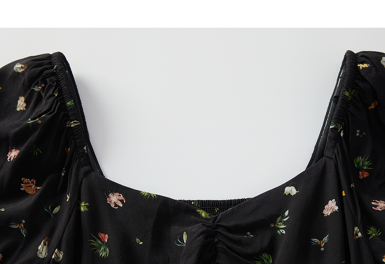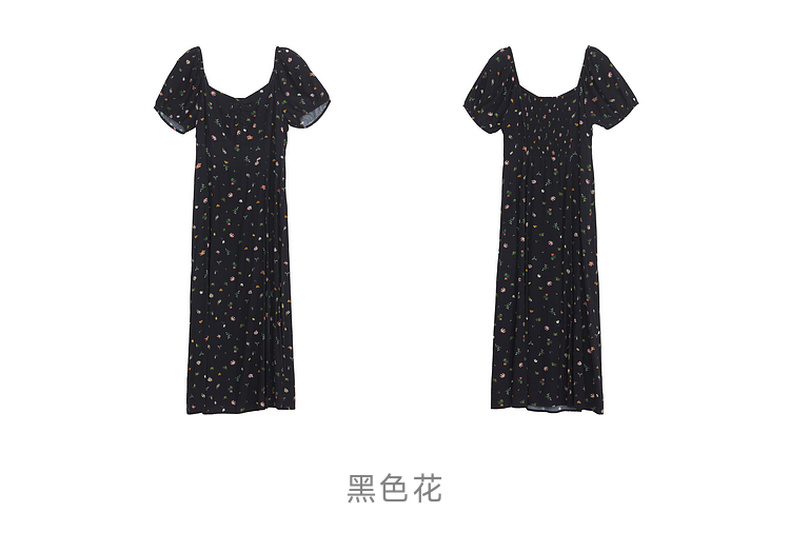 谜底碎花连衣裙短袖女2024夏季新品优雅浪漫前开叉长裙242ML0699