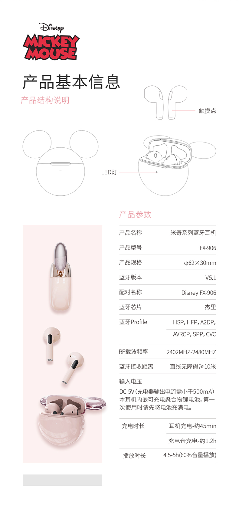 迪士尼无线蓝牙耳机FX-906
