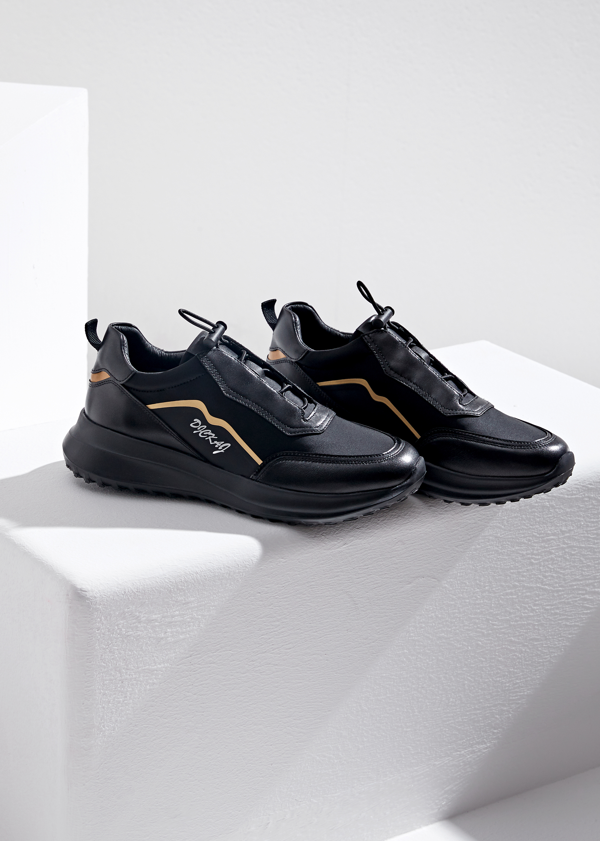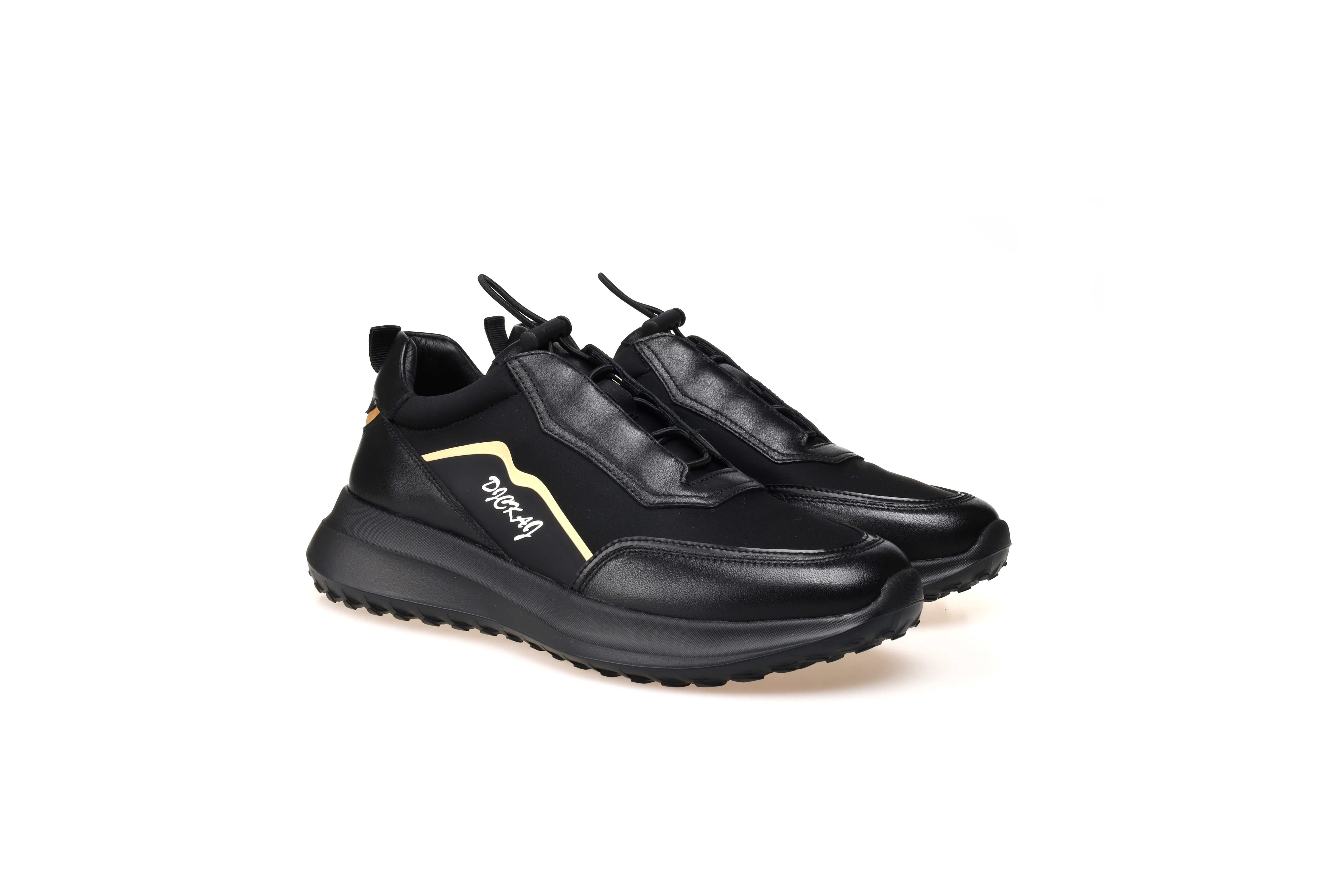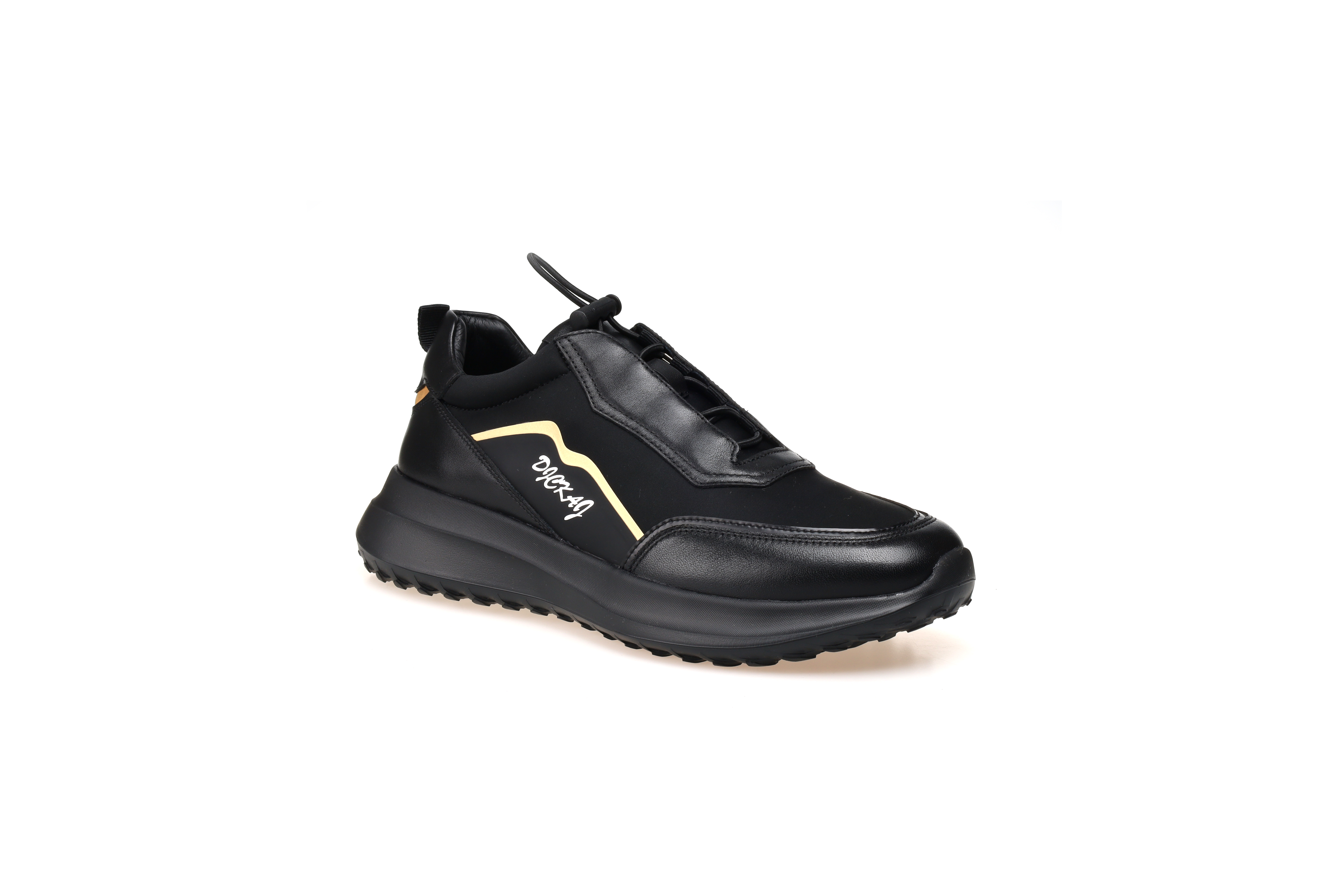 豪麟名鞋奥莱迪嘉男装牛皮革/织物动感休闲鞋DJWTO22MX201黑色 原价1960元