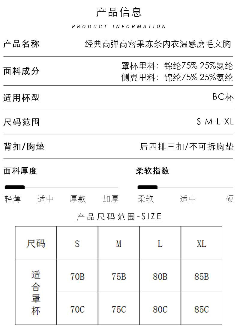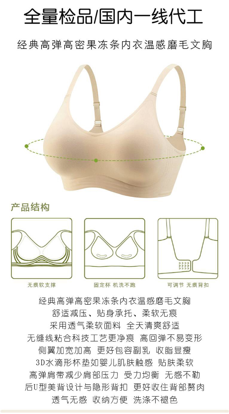 【123号】女士冬季舒适磨毛果冻条软支撑深V无痕内衣文胸