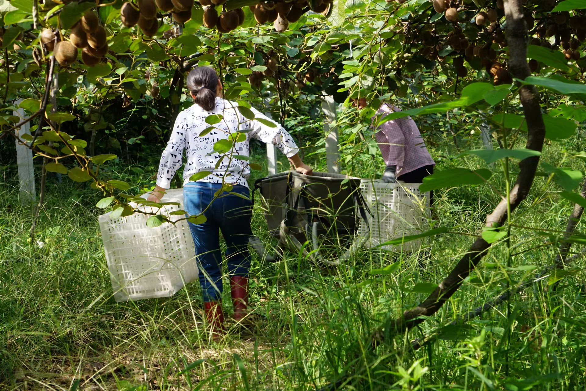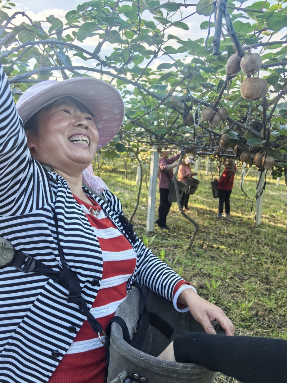 采收猕猴桃时,丰收的喜悦