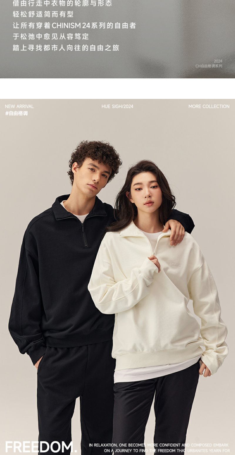CHINISM赤尘 重磅半拉链卫衣男春季美式宽松休闲男士翻领长袖上衣