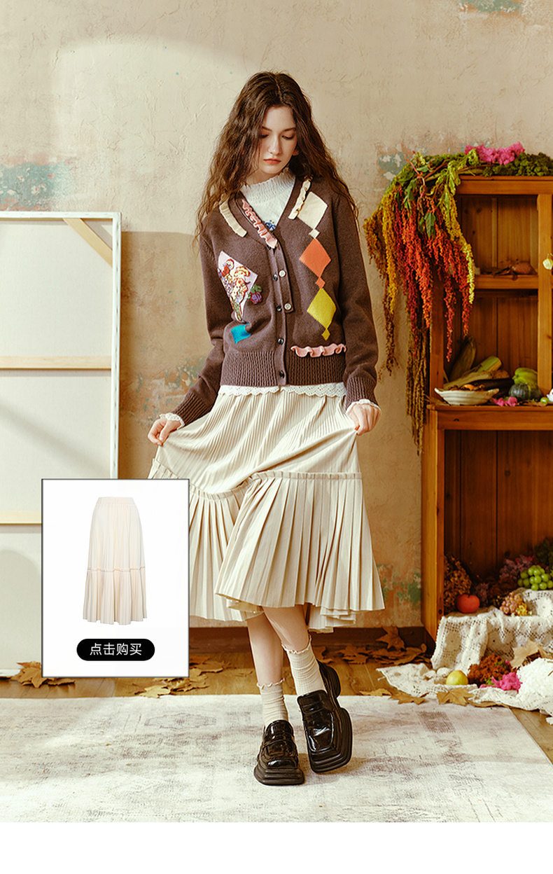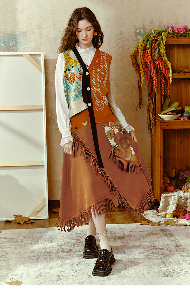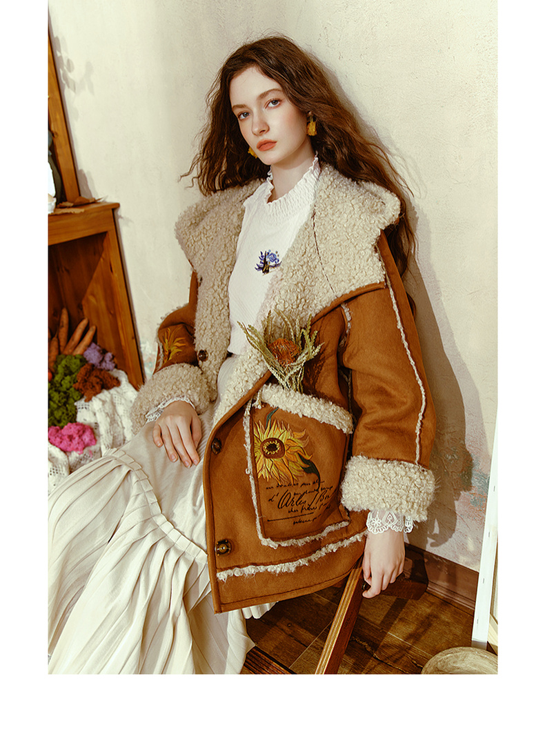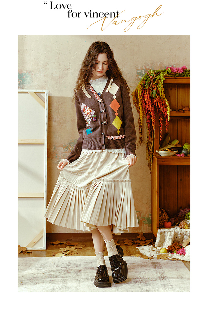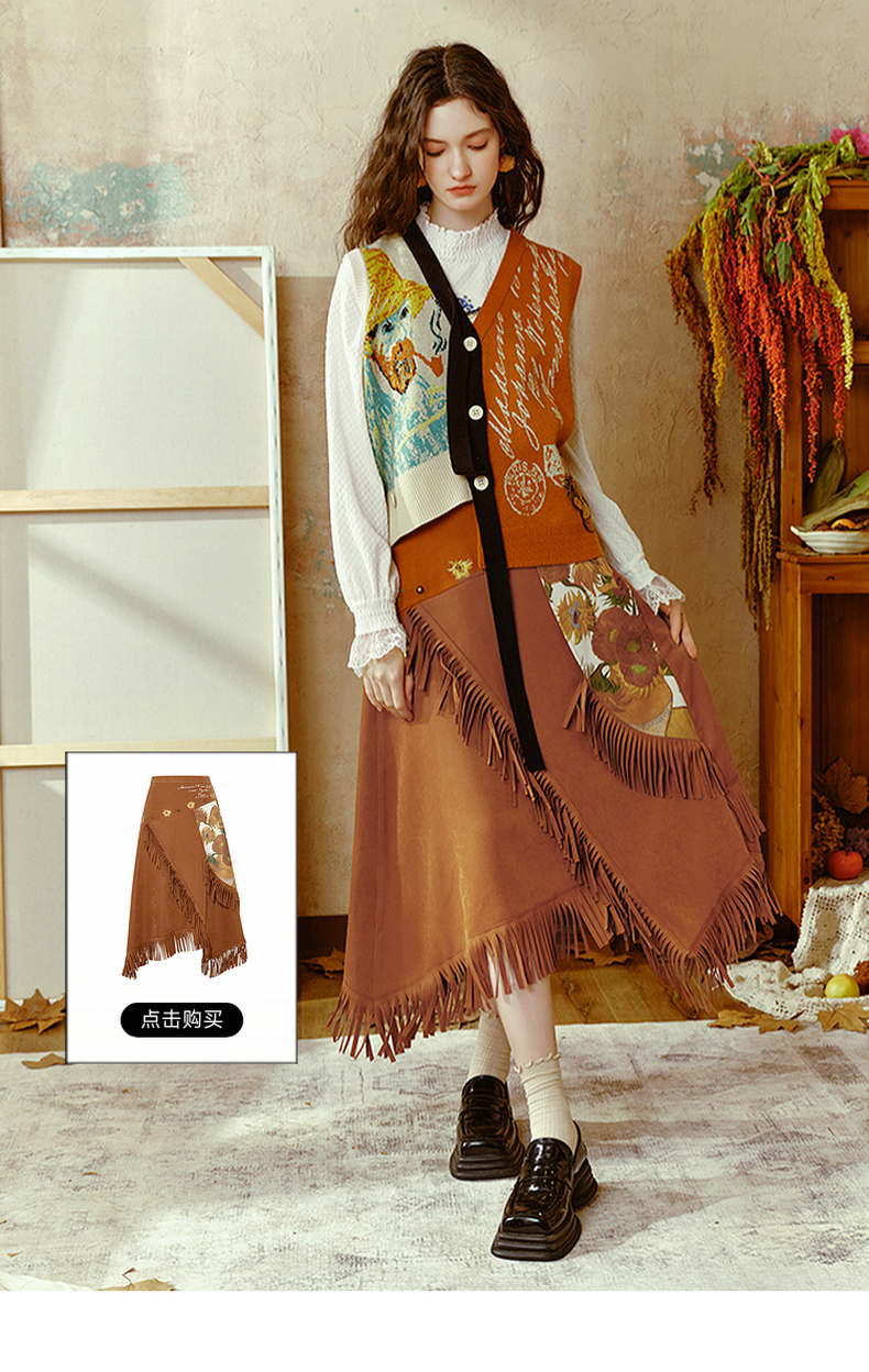 两三事心向莫奈 夏季新款文艺风油画印花口袋长袖衬衫女宽松
