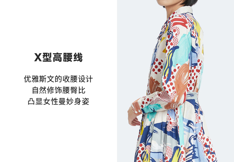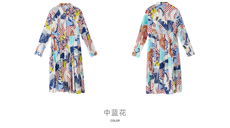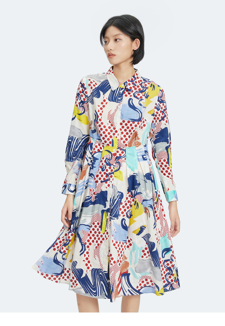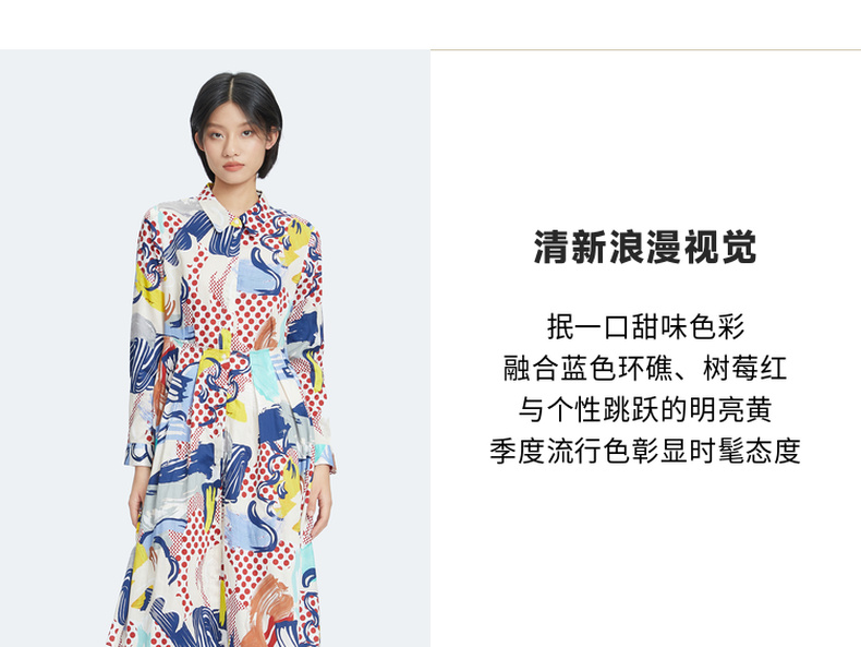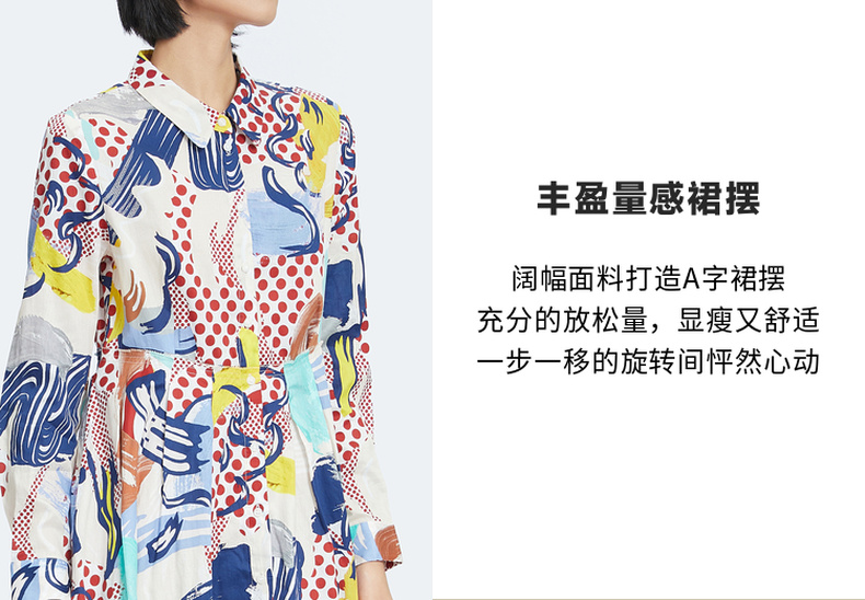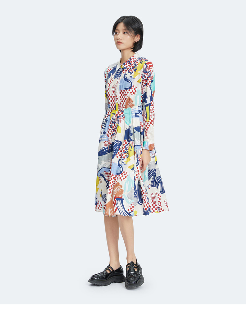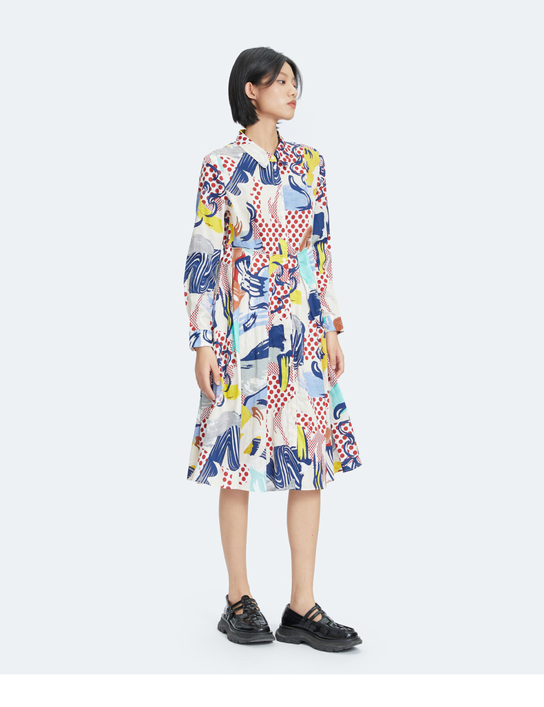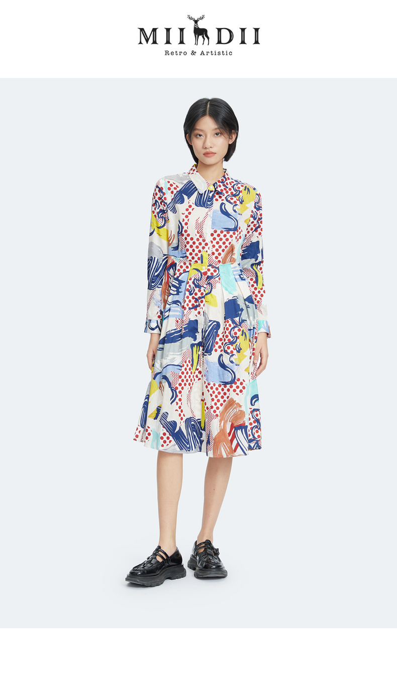 【不规则印花】谜底2022秋复古文艺印花收腰连衣裙女227ML6129