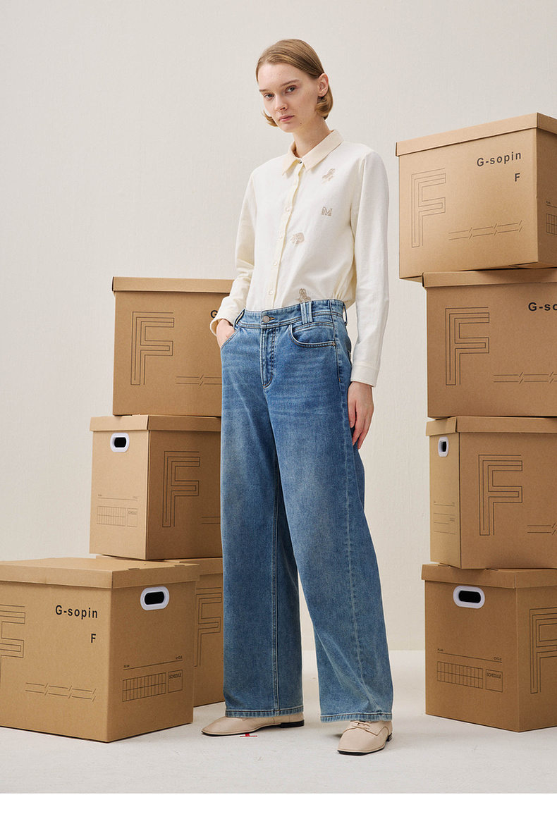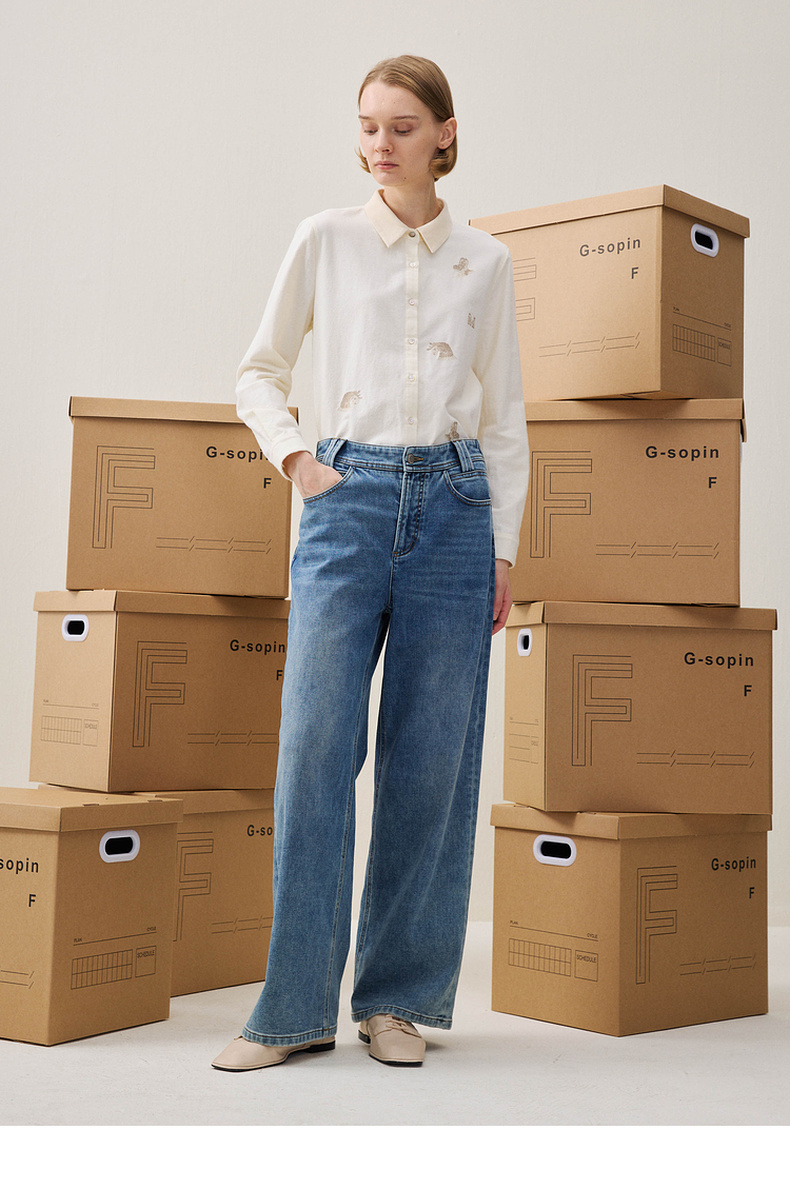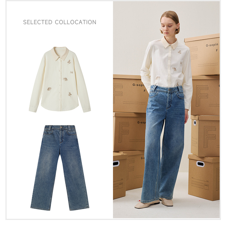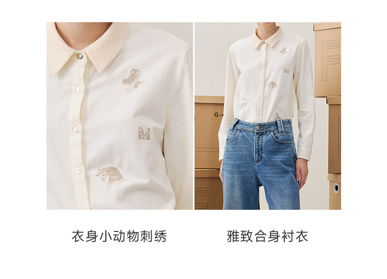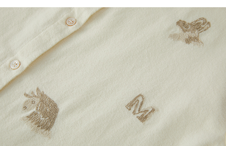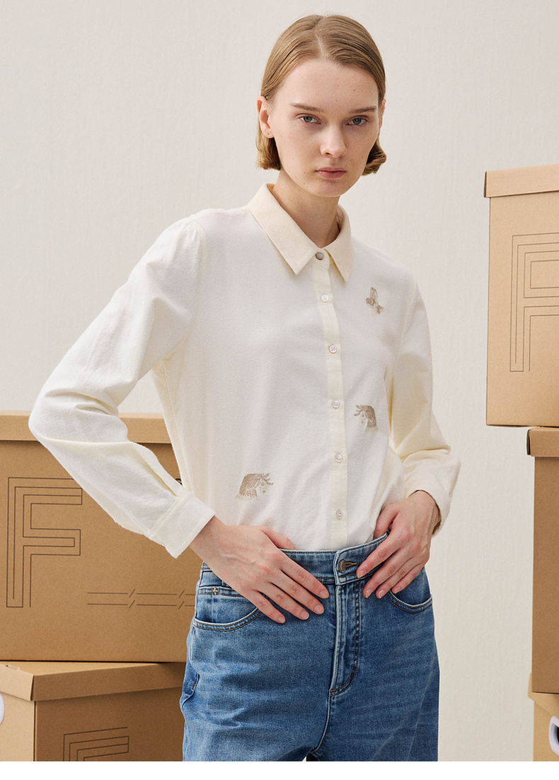 谜底白衬衣长袖2025冬季新品纯棉磨毛小动物刺绣衬衫女254MC1717