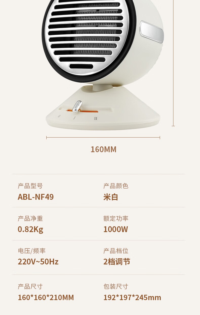 【小家电】Abereve 桌面暖风机家用小型节能电暖气小太阳热风机办公室桌面神器ABL-NF49 HF