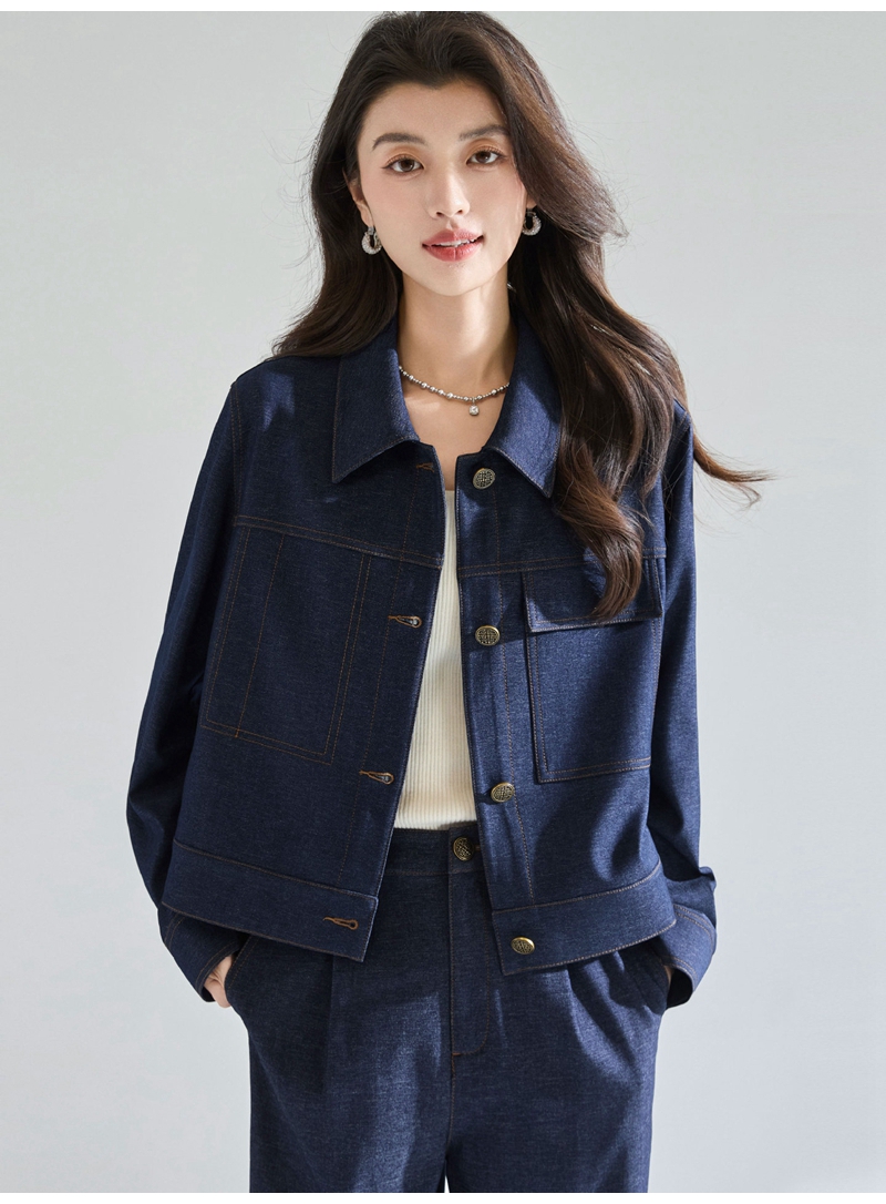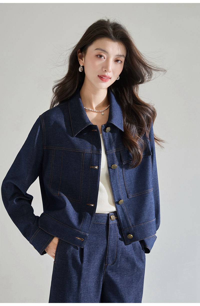 2026春装廓形显瘦翻领长袖单排扣牛仔外套