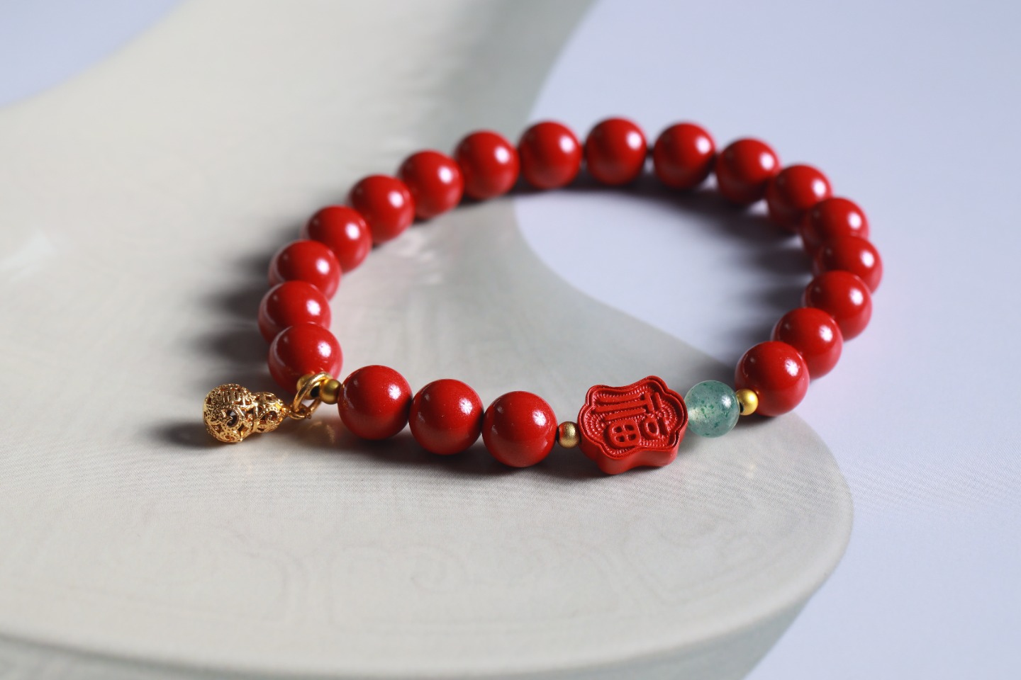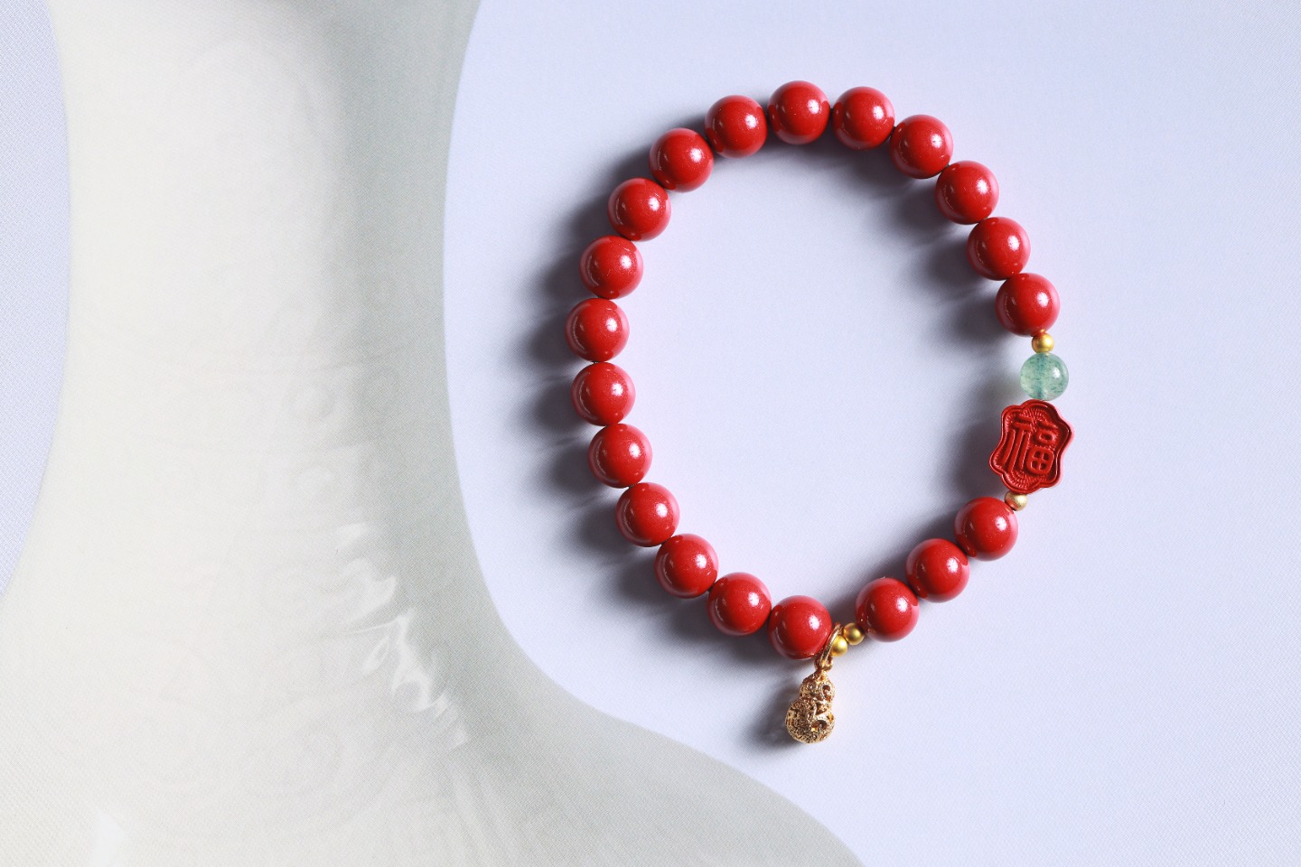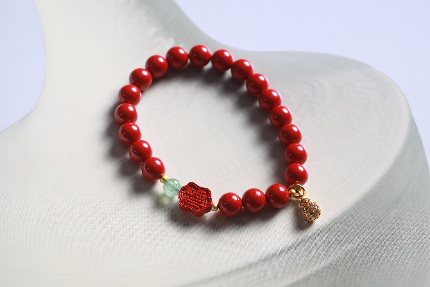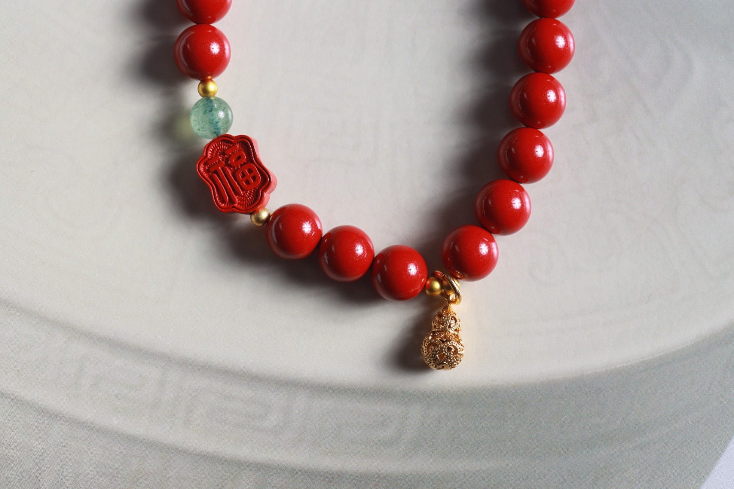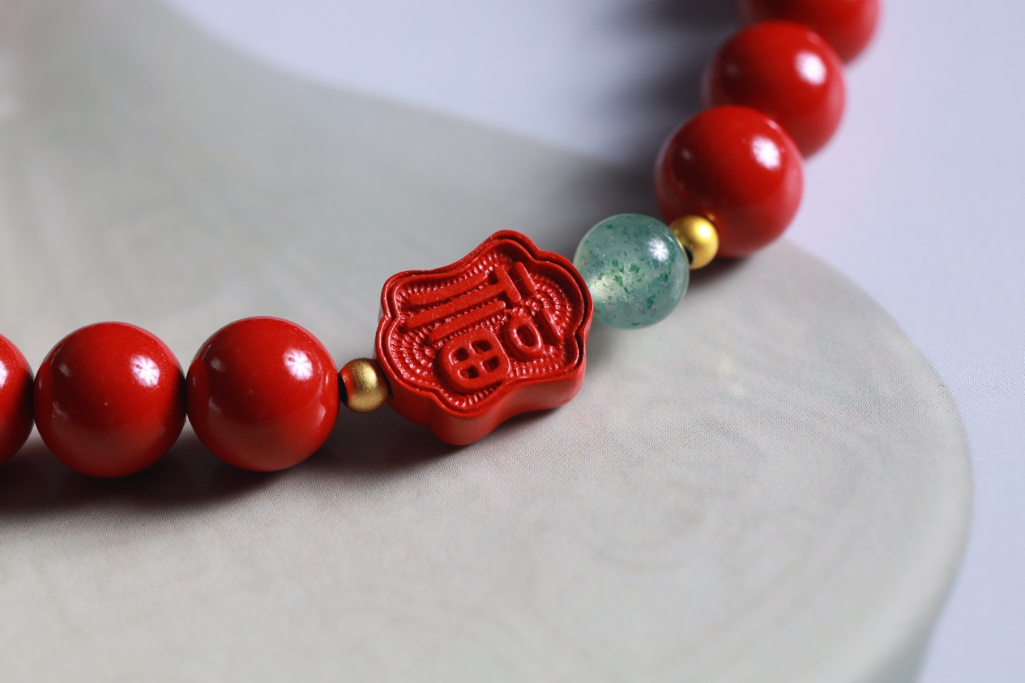 | 配件 | 铜珠,绿草莓,朱砂双面福字,沙金镂空福字小吊坠 |