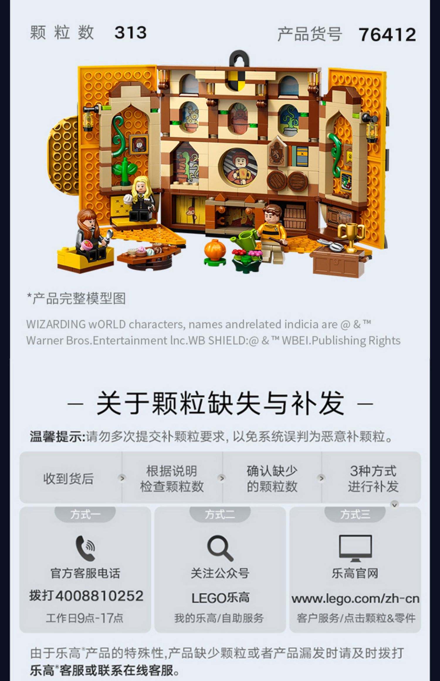 乐高积木L76412 乐高哈利波特系列赫奇帕奇学院旗帜