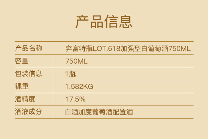澳洲奔富 特瓶Lot.618加强型白葡萄酒750ml一箱6瓶