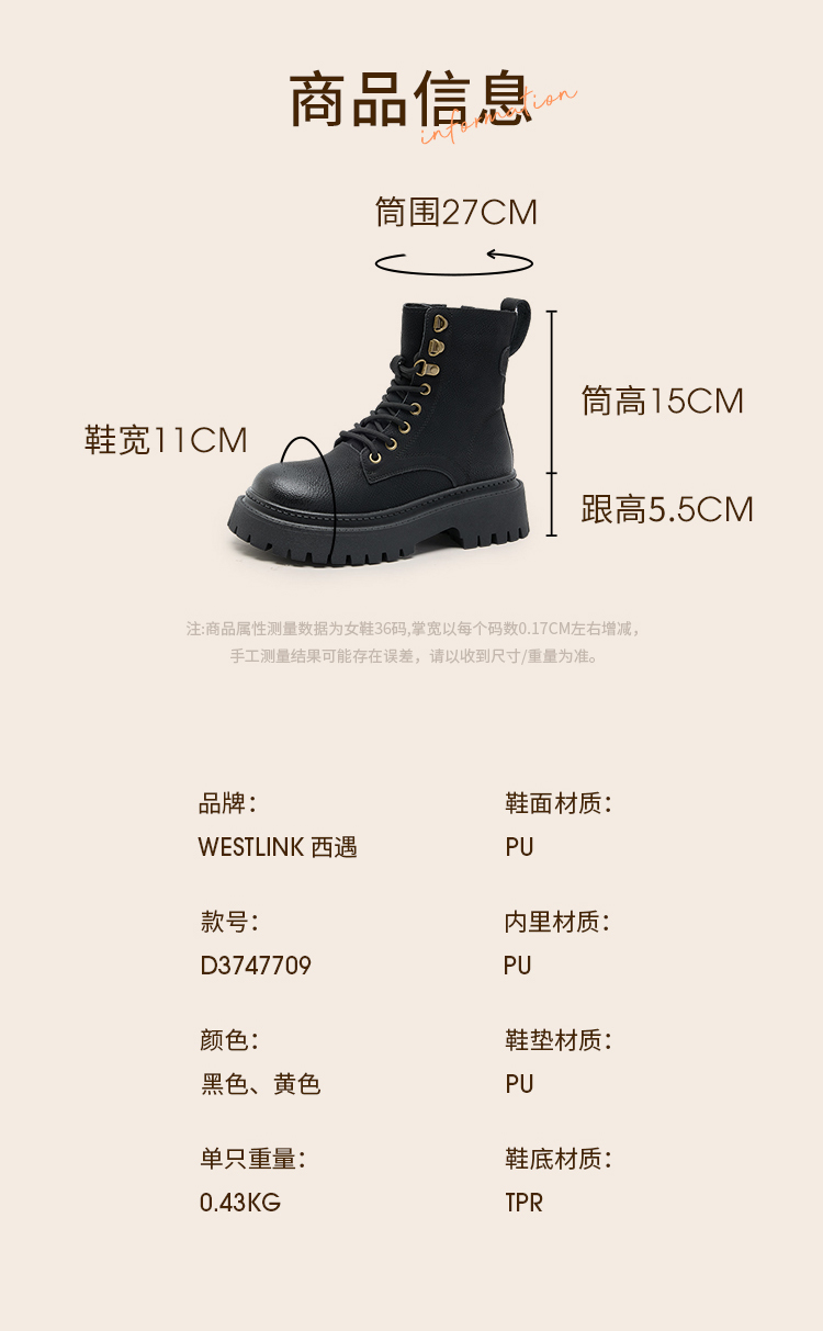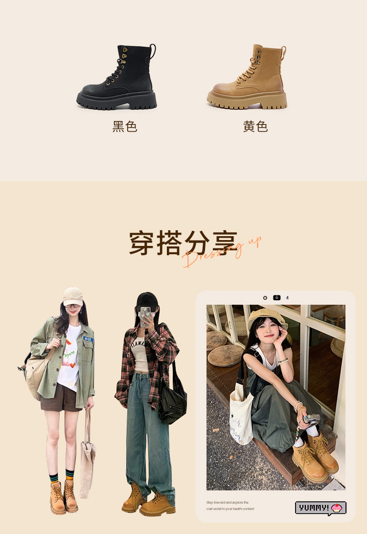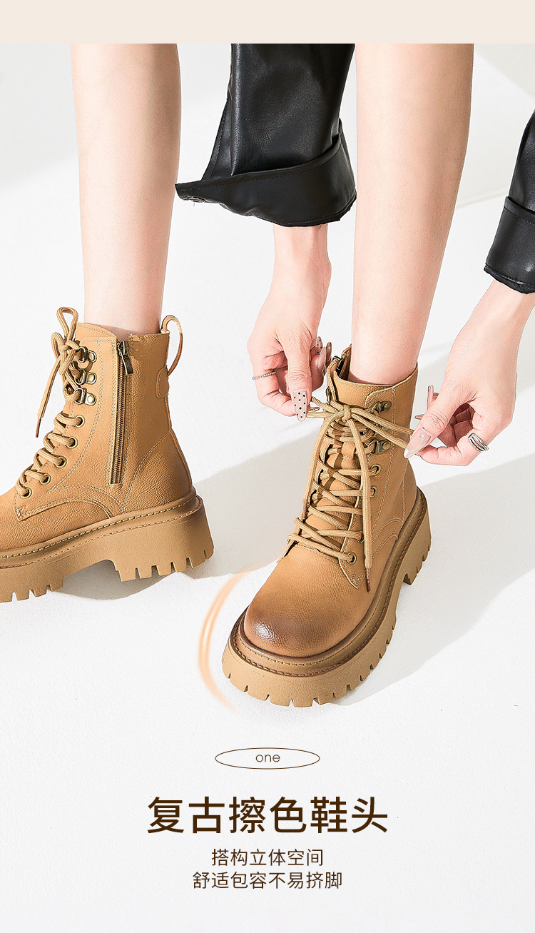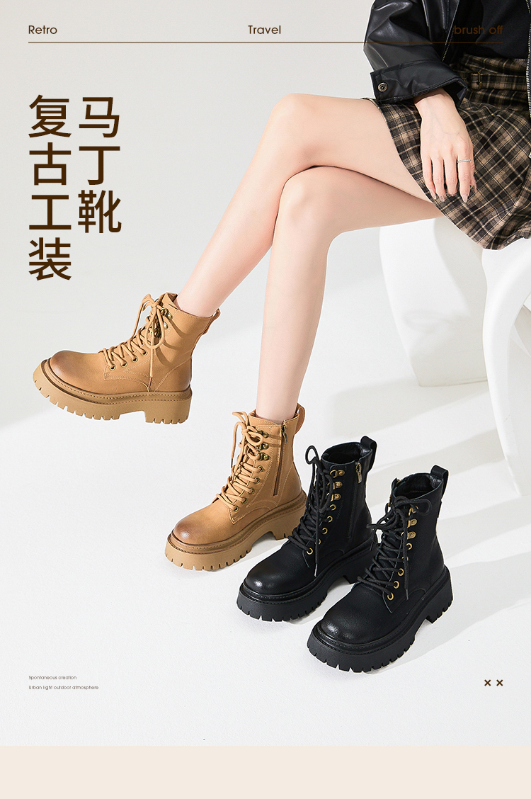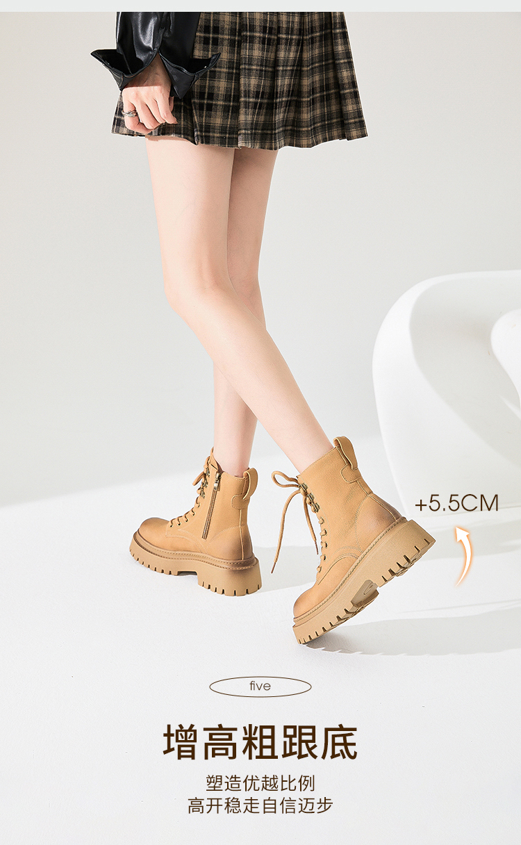 西遇工装马丁靴女2025新款秋冬复古英伦风短筒靴子增高厚底大黄靴D3747709