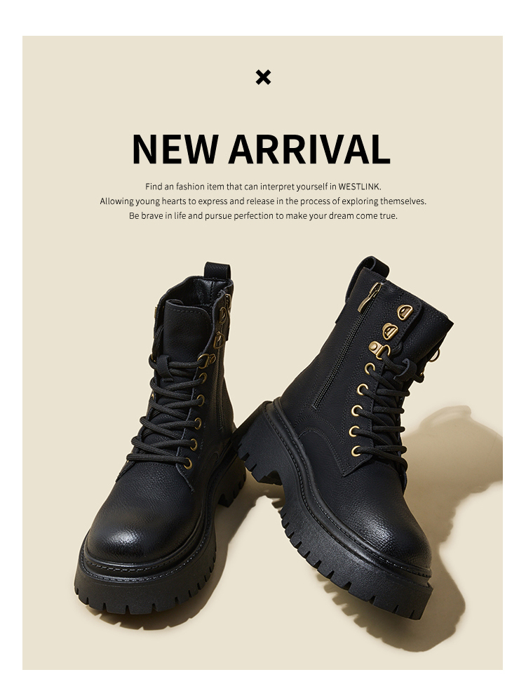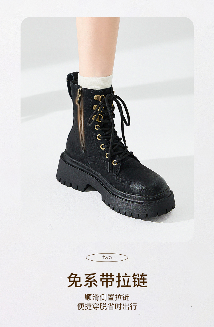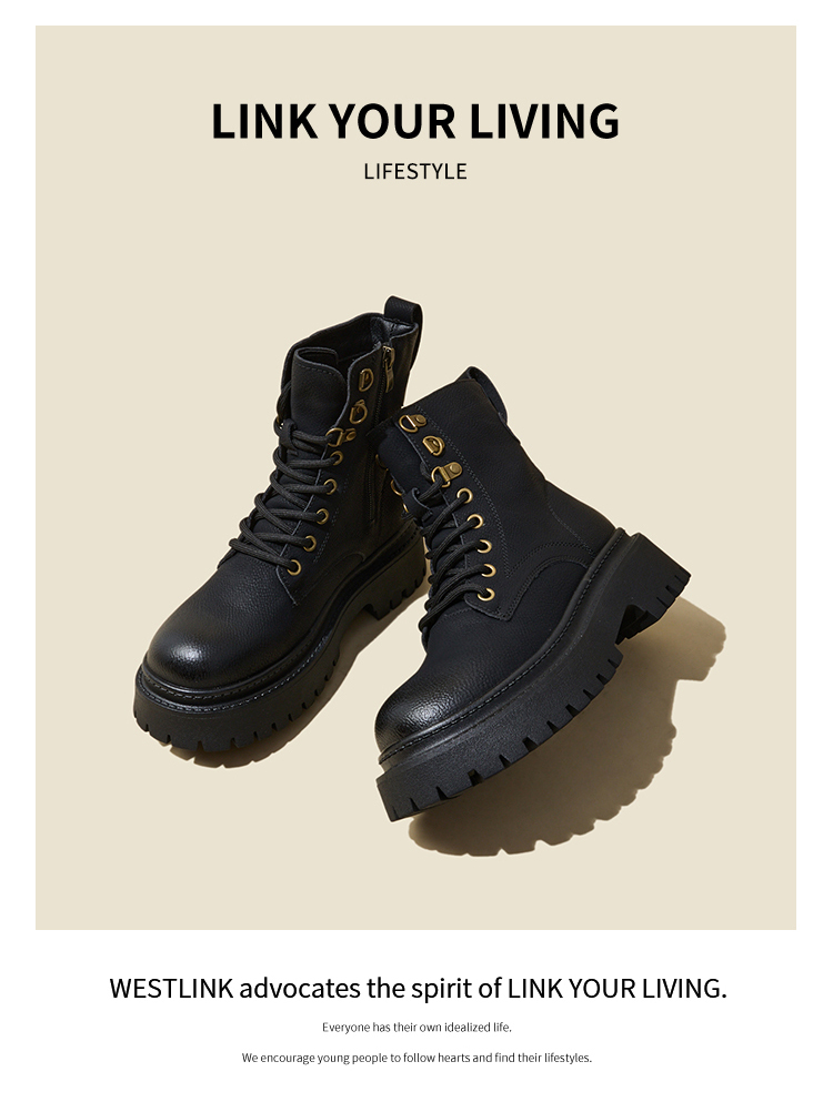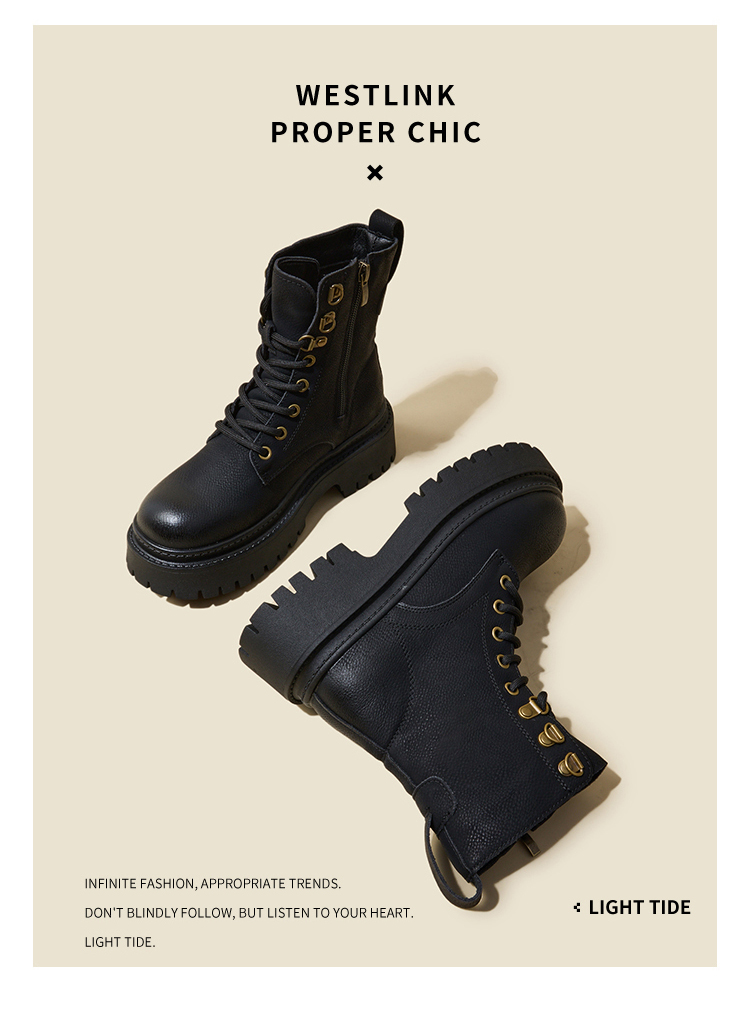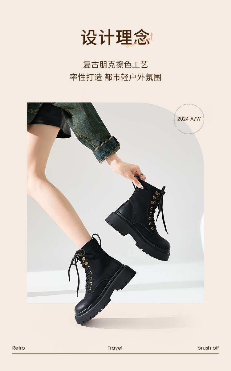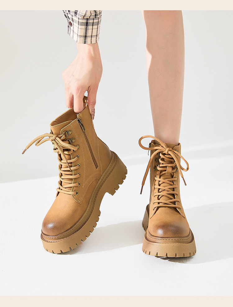 西遇工装马丁靴女2025新款秋冬复古英伦风短筒靴子增高厚底大黄靴D3747709