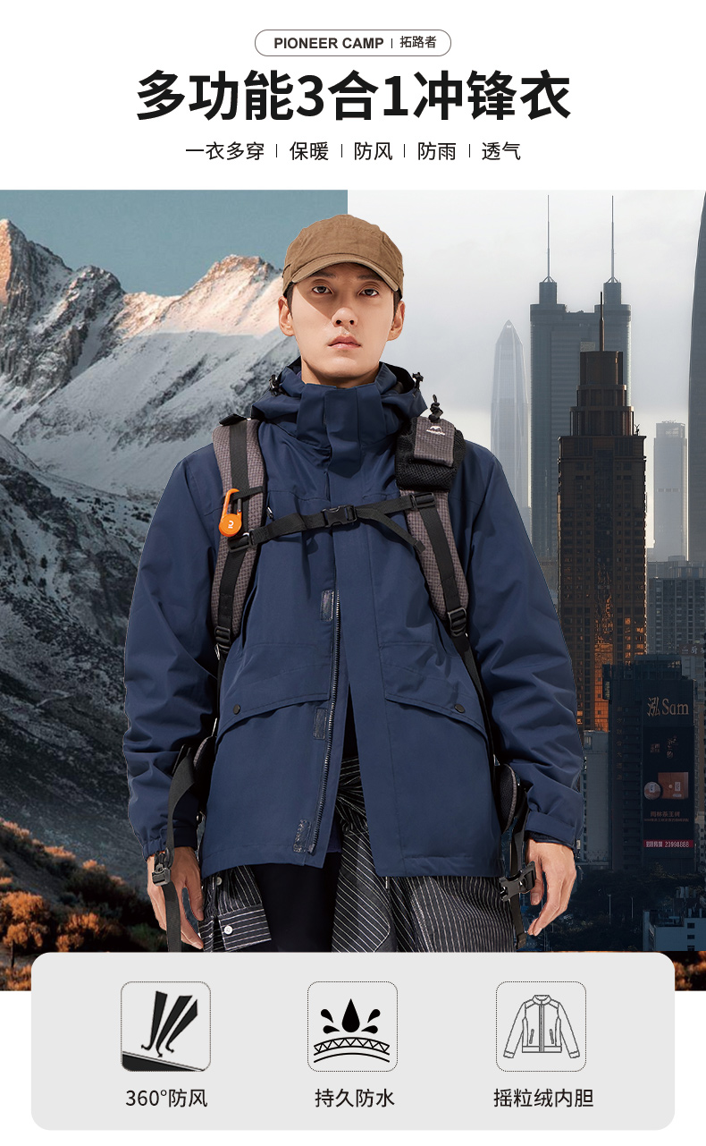 拓路者冲锋衣男秋冬户外登山外套单壳腋下拉链版本