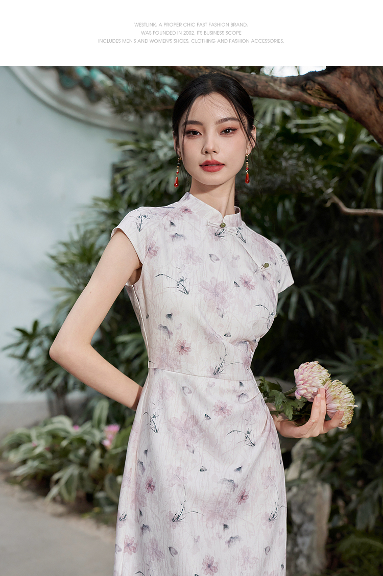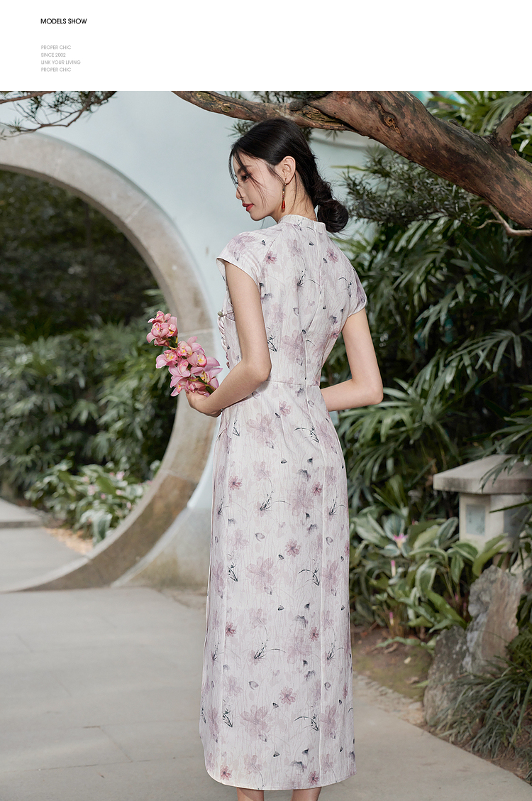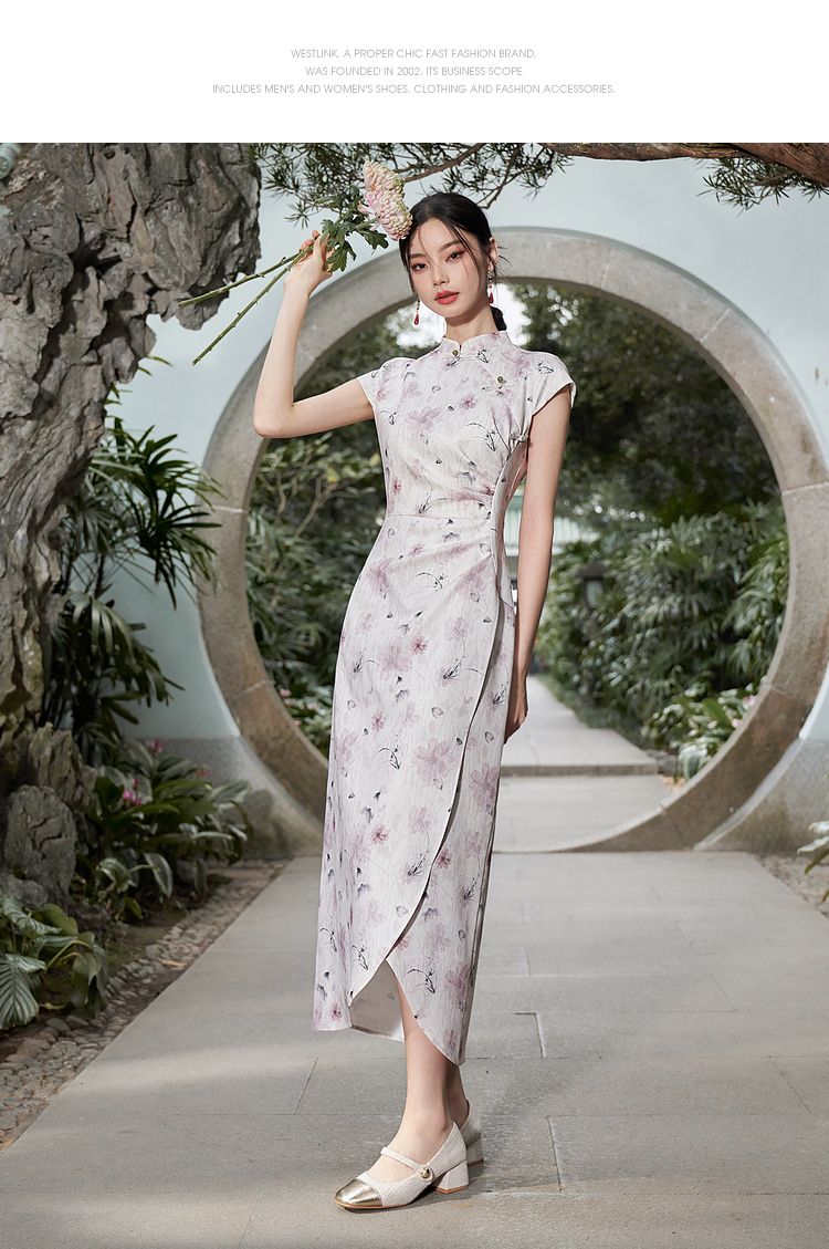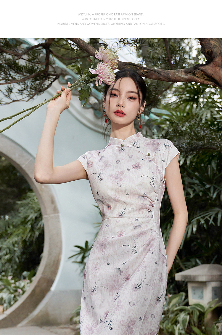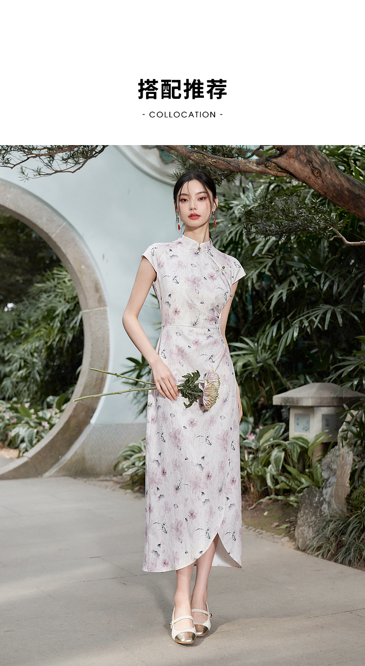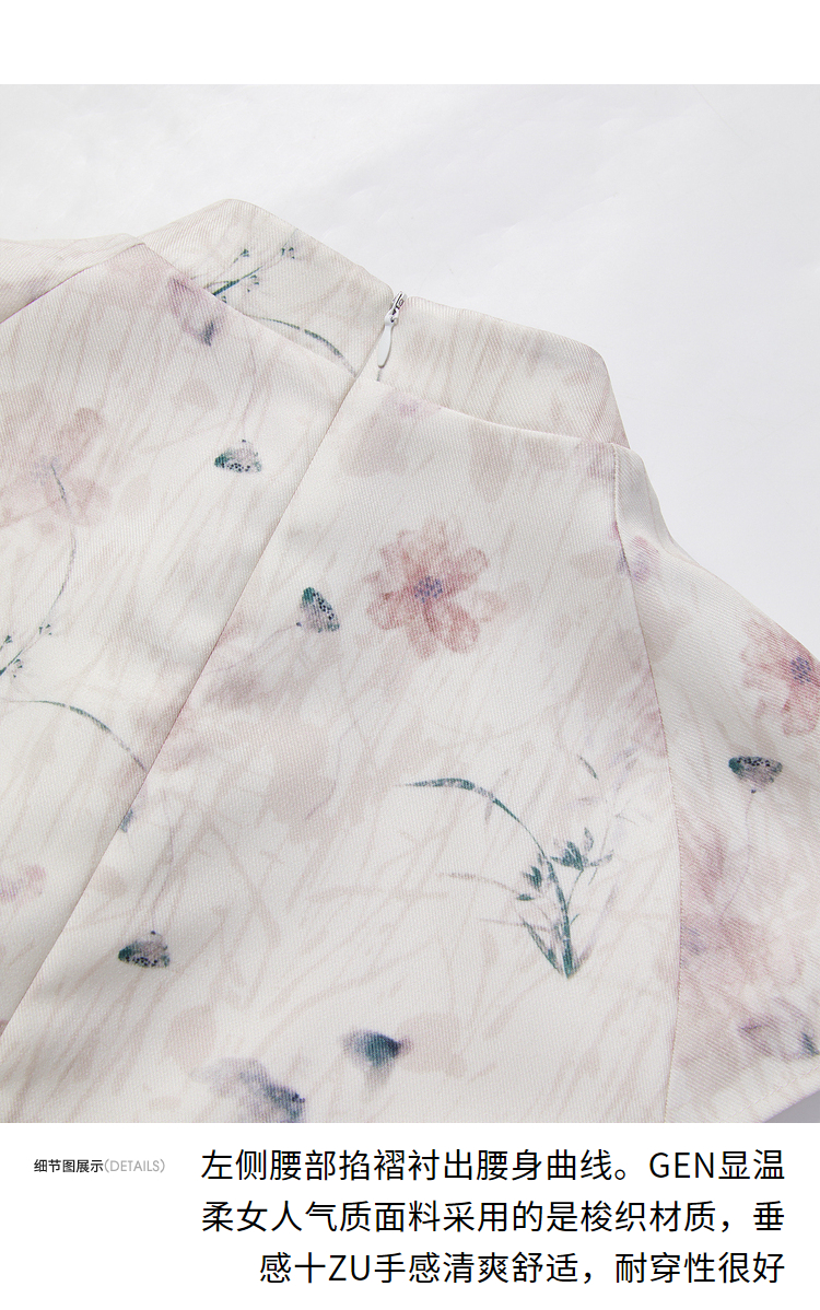 西遇新中式修身素雅复古旗袍女春季新款国风改良碎花连衣裙D0340077