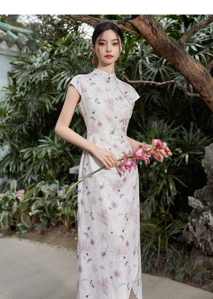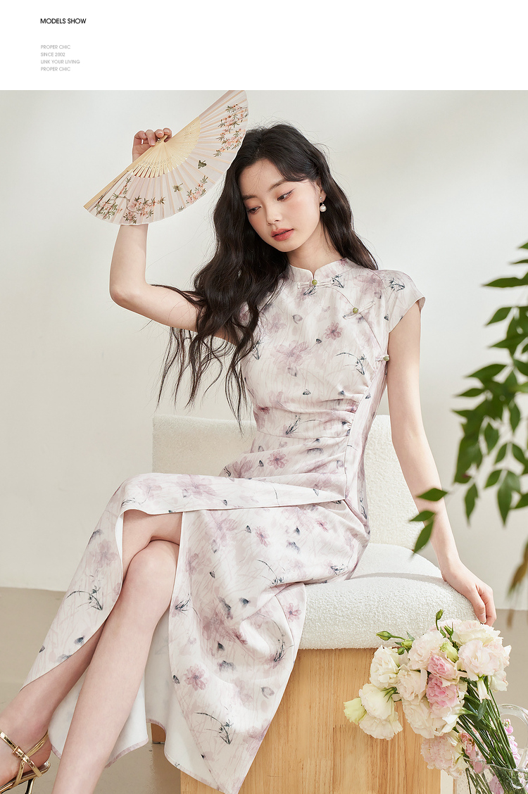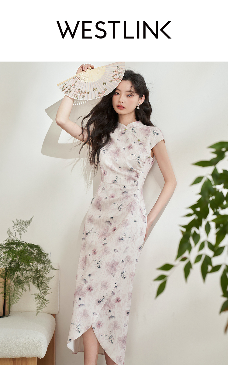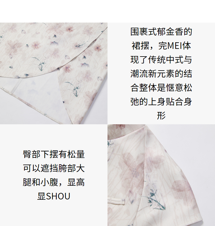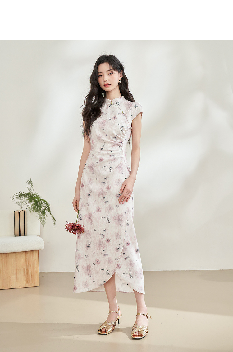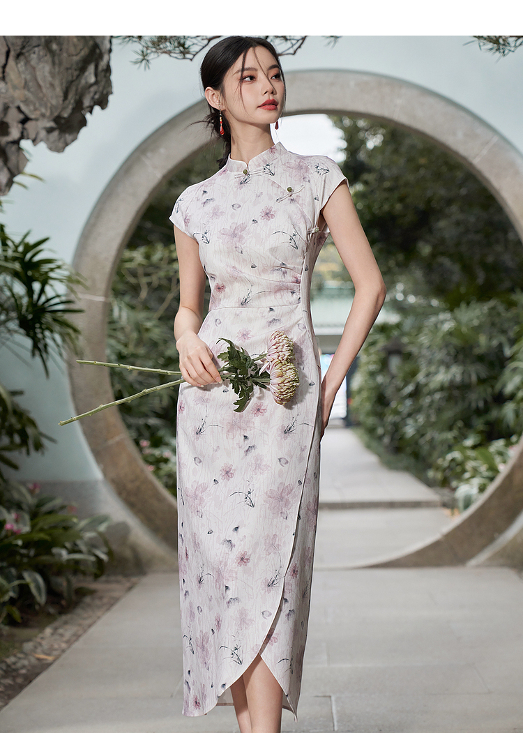 西遇新中式修身素雅复古旗袍女春季新款国风改良碎花连衣裙D0340077