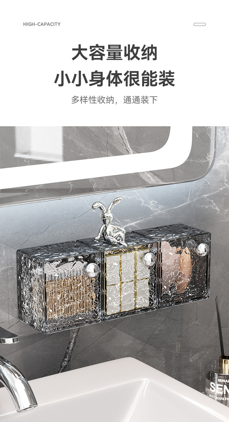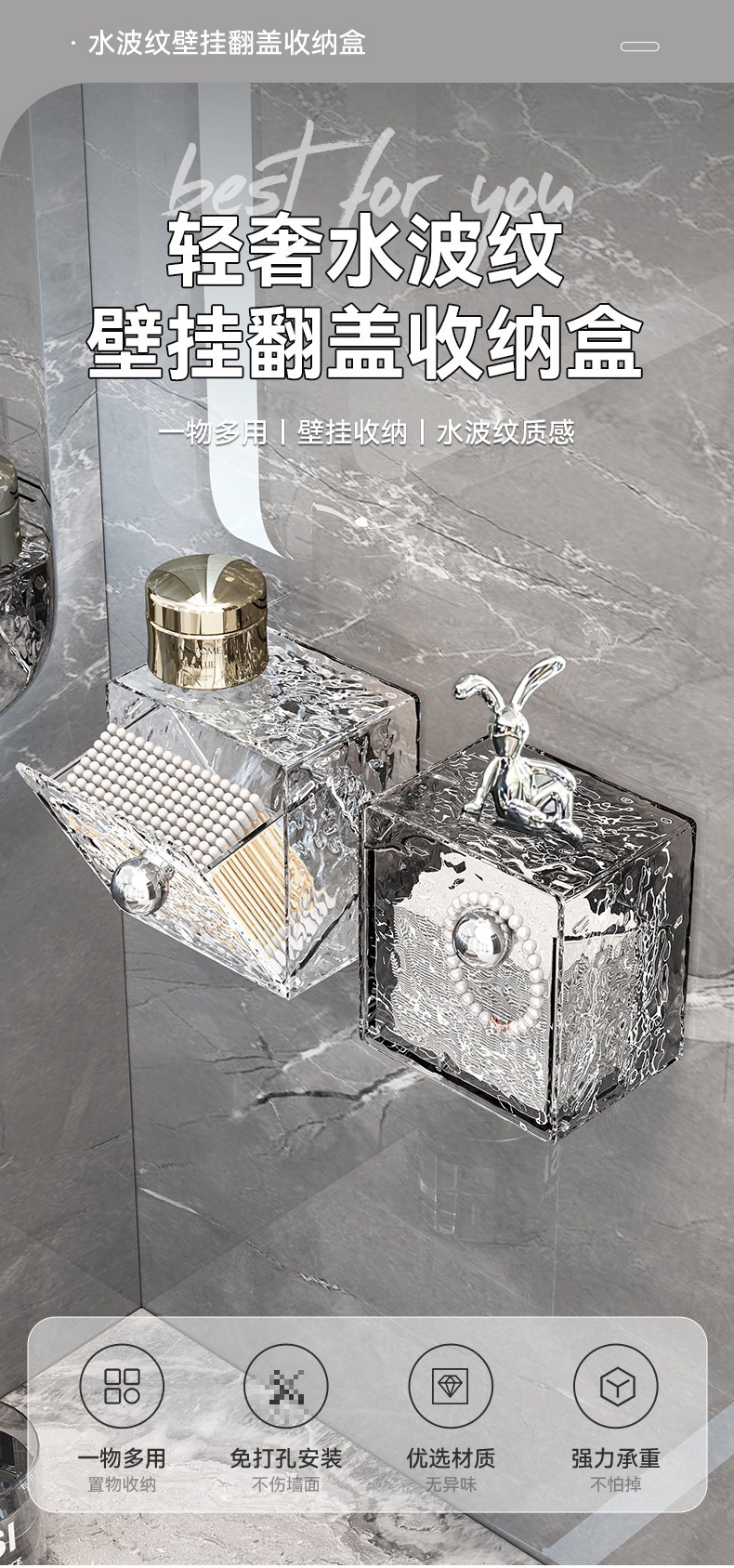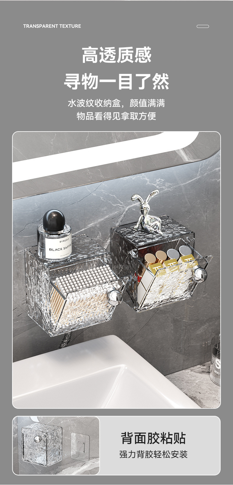 卫生间镜柜收纳盒 化妆棉卸妆棉签盒 壁挂翻盖洗漱台厕所浴室置物架