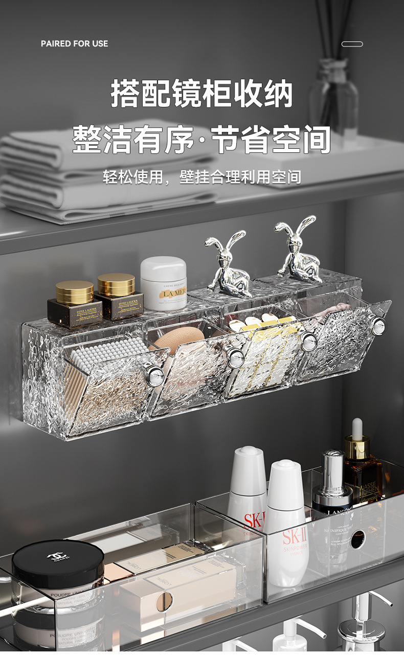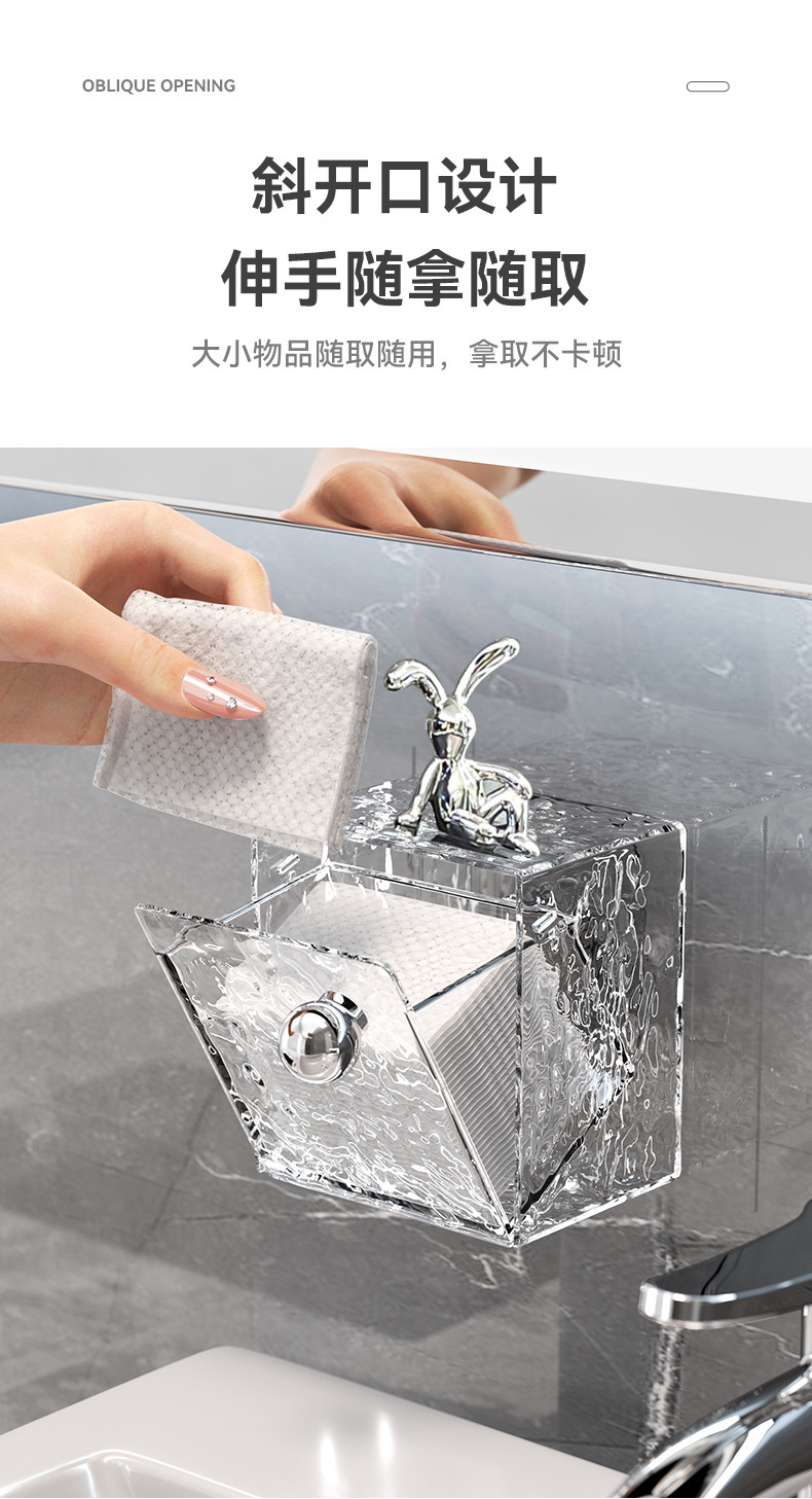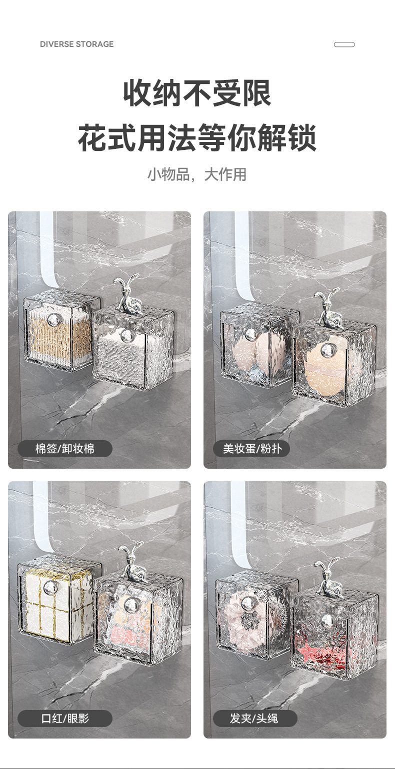卫生间镜柜收纳盒 化妆棉卸妆棉签盒 壁挂翻盖洗漱台厕所浴室置物架